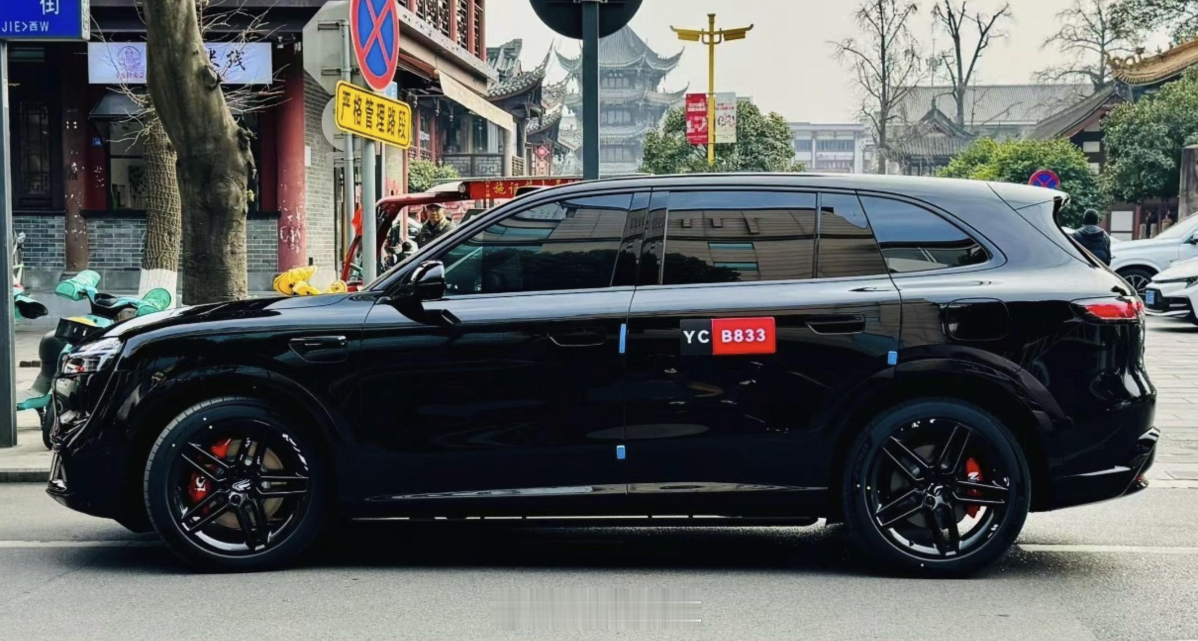 问界 M6 新图片曝光,全黑配醒目的红色卡钳,是不是比白色气势更强?