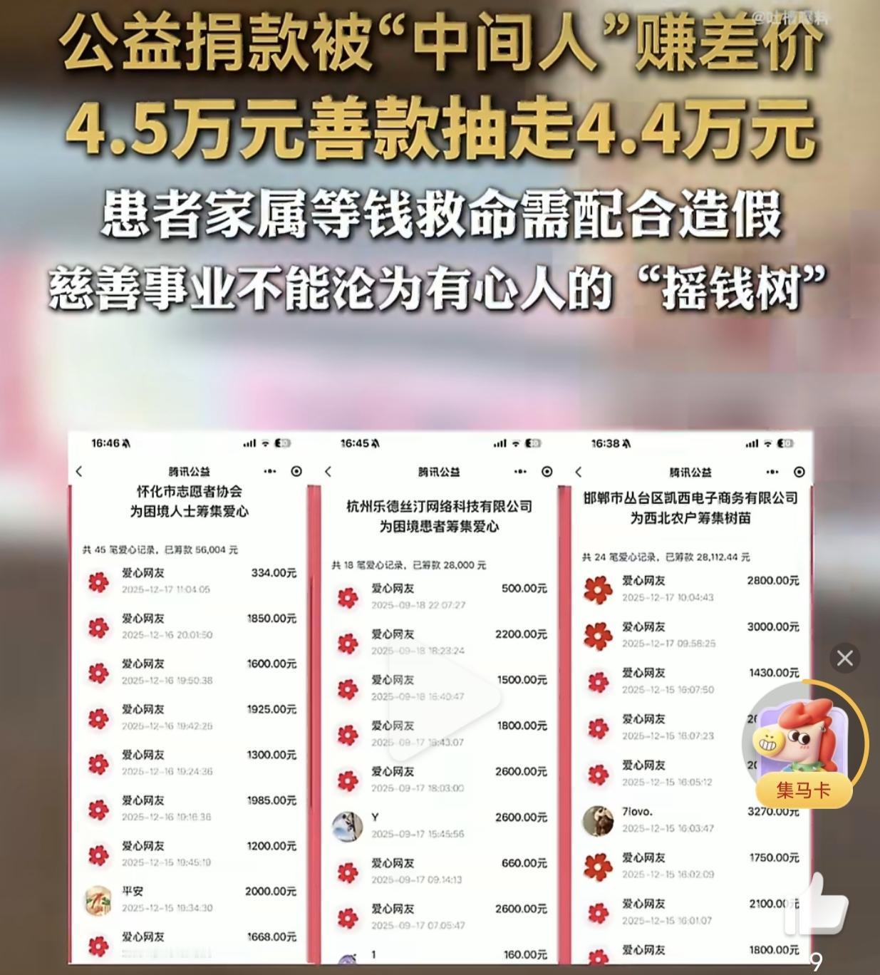 四万五的救命捐款,居然有四万四落进了中间人的口袋!这简直是把大家的爱心当成了自己的提成,哪是在做慈善,分明是在“扒皮”。爱心捐款是救急救难的,不是某些人的“油水”。要堵住这个窟窿,就得让每一笔钱从哪里来、到哪里去都晒在阳光下,查得清清楚楚。对这些“黑心中介”更要严惩不贷。当中国人的善心被一次次辜负糟蹋时,中国的公益事业也就到头了!