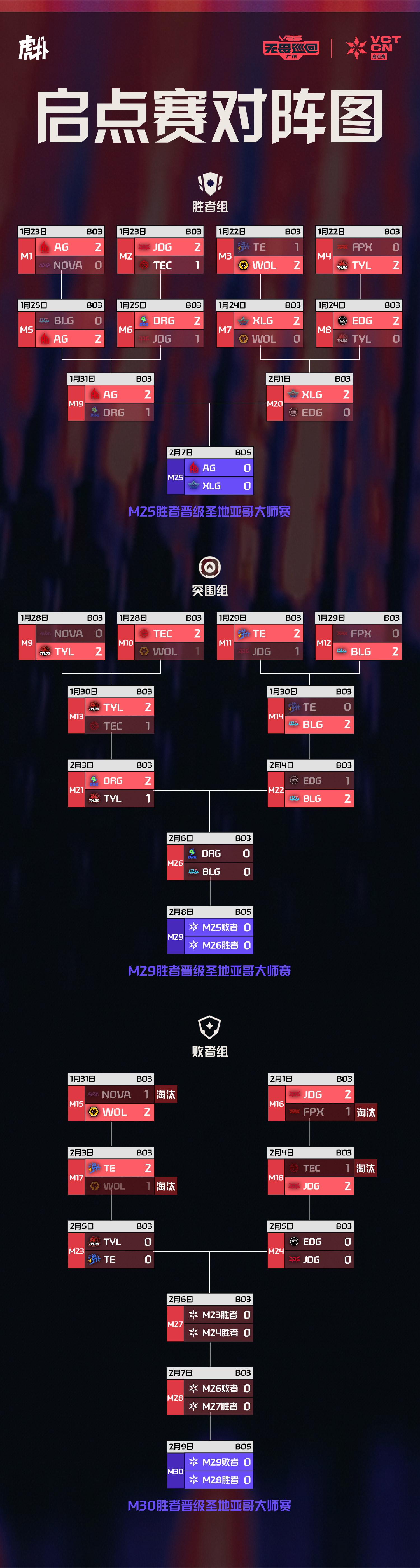 虎扑02月04日讯今日VCTCN启点赛比赛战罢,具体赛果及晋级情况如下: