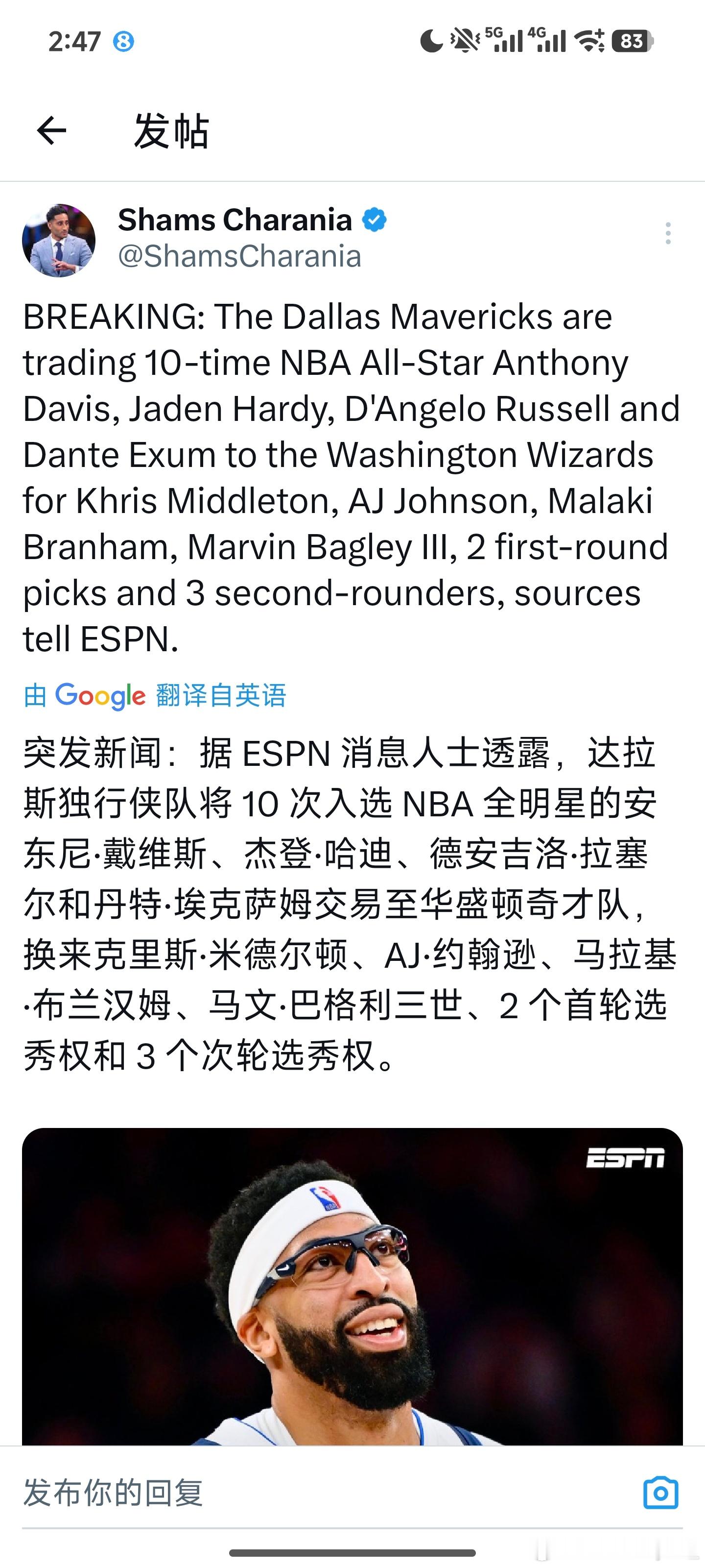 26雷霆首轮(预计30号签)+30勇士保护首轮(1-20顺位保护。。。。。。。)+三个次轮+米德尔顿、不懒汉姆、巴格丽这样的垃圾,再加上雄鹿24年选的废铁小孩哥,这样的筹码不说是破铜烂铁,也得算得上三瓜两枣,浓眉的交易价值确实闹麻了,Nico你大错特错!独行侠将浓眉送至奇才