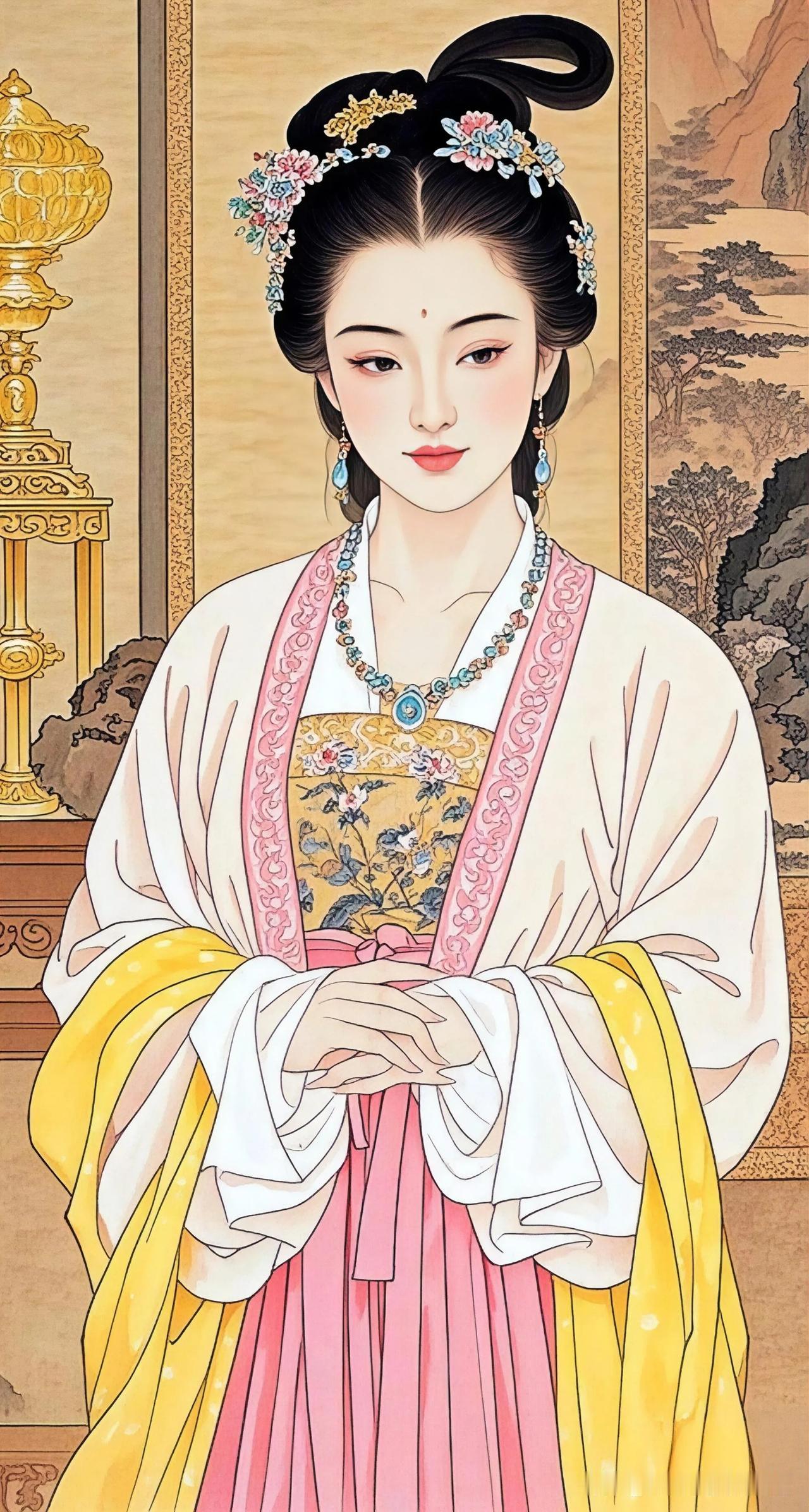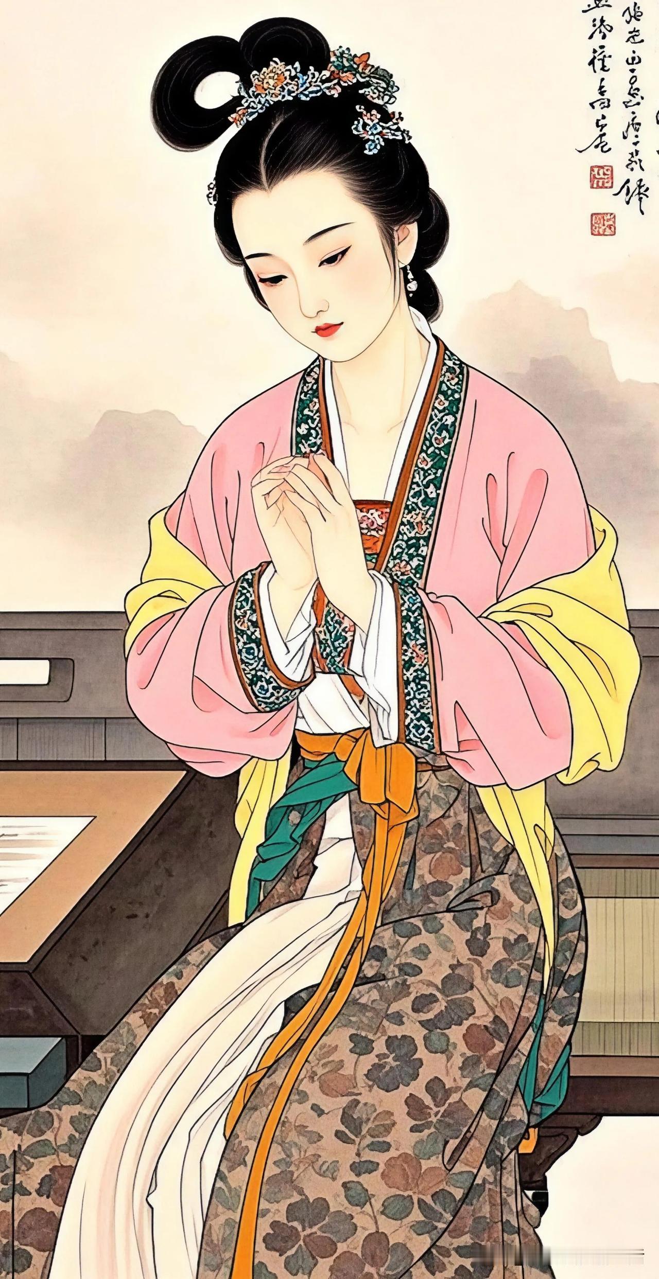 青瓷茶盏映红颜,古韵犹存画中仙。