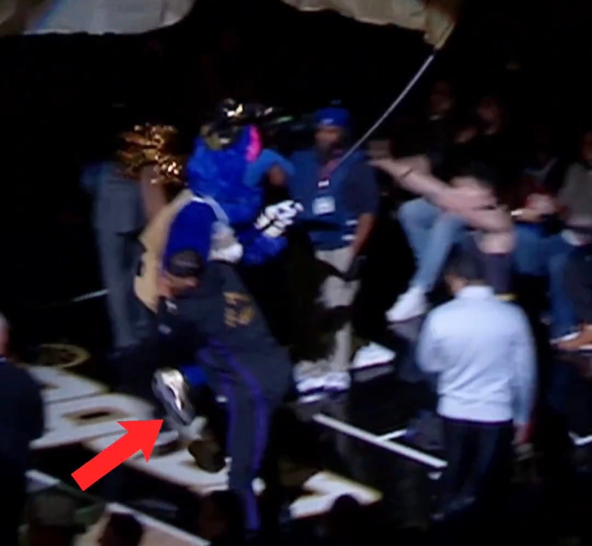 海斯,因为推到了奇才主场的吉祥物,被禁赛一场