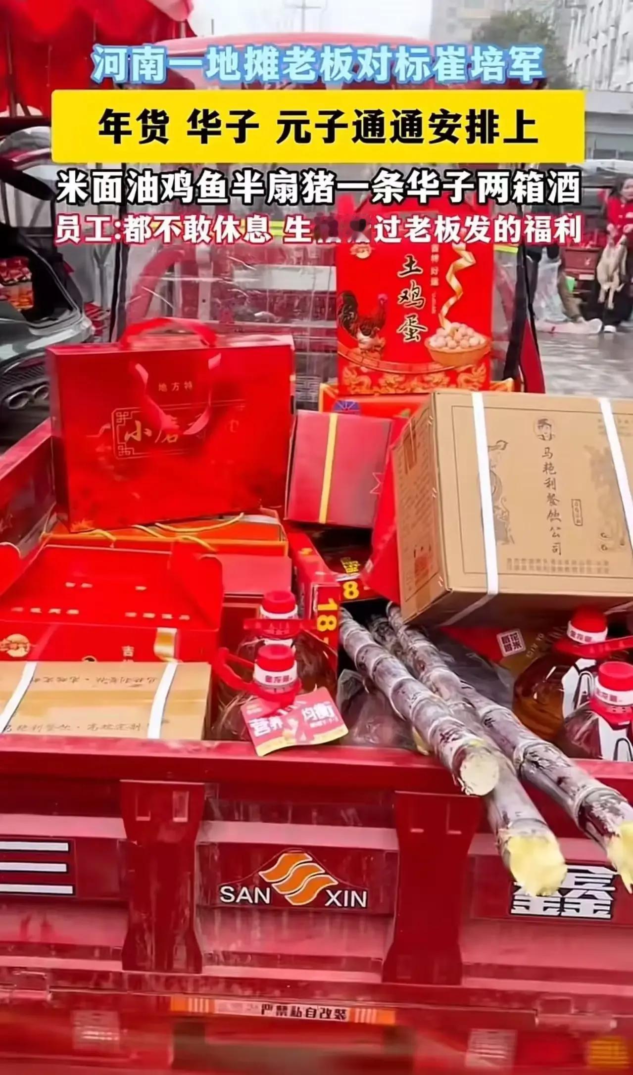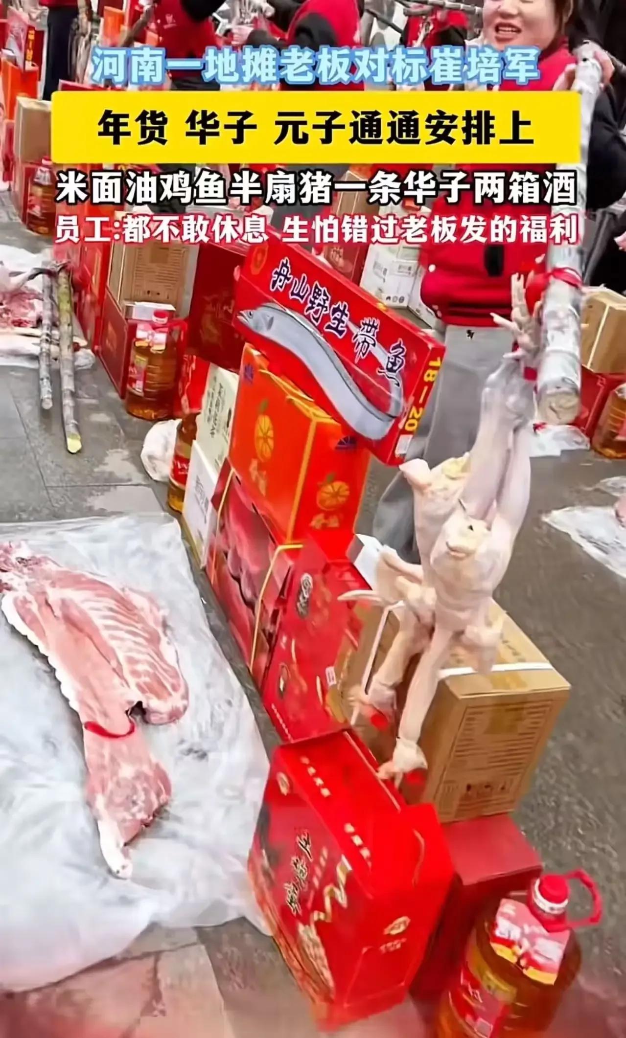 “这个女老板火了!”河南一老板对标崔培军,拿出300万给员工办年货,年货,香烟,钞票通通安排上。有人质疑老板作秀,但女老板的一番话,令人拍手叫好! 这位女老板在公司年会上豪掷300万元,为200多名员工发放“硬核年货”:每人一袋米、一桶油、半扇猪肉、整鸡整鱼、两箱白酒,外加一条中华香烟和一个装着现金的红包。 这样的场景,似乎已经不再是新闻,而是一股温暖人心的力量在悄然流淌。或许有人会说,这只是老板的“作秀”,但我想问,真正的善意难道只能用“作秀”来定义吗?在这个快节奏、功利至上的社会,能有人愿意用真心去温暖员工的心,这本身就是一种难得的“勇气”和“责任”。 其实,很多人都知道,企业的成功不仅仅是业绩的数字堆积,更在于背后那份对员工的关怀与责任感。女老板的这份大手笔,或许在外人眼中只是一次“豪赌”,但在员工们心里,却是一份沉甸甸的信任和认可。她用实际行动告诉每一个人:你们的付出是值得的,你们的努力不会被忽视。 更令人感动的是,她在发放年货的过程中,坦言:“我希望每一个员工都能感受到家的温暖。我们公司不是冰冷的数字,而是有温度的大家庭。”这句话,直击人心,也折射出一个企业的温度和责任感。它让我们看到,领导者的善意不只是表面上的“秀”,而是真正关心员工的生活和幸福。 或许有人会质疑:这样花费巨资,是否划算?是否会影响企业的财务健康?但我想说,投资员工,就是投资企业的未来。只有员工感受到被重视和关怀,才能更有动力去拼搏、去创新。正如那句老话:员工的幸福感,就是企业的最大财富。 更深层次地看,这场“豪掷”也反映出一种人性的光辉。在这个物欲横流的时代,依然有人坚持用善意和真心去影响他人。这不仅仅是一次年终的善举,更是一种传递正能量的方式。它告诉我们:善良和关怀,永远不会过时。相反,它们能点亮更多人的心,激发更多的善意。 这份行动,也让我们反思:在自己的岗位上,是否也能用一点点关心去温暖身边的人?也许是一句鼓励的话语,一次真诚的问候,或者一份小小的帮助。每一个微小的善意,都可能成为他人生命中的一束光。 最后,我想说,像这位女老板一样,用心去做事,用爱去温暖人心,才是真正的“爆款”。在这个充满挑战的时代,正能量的故事就像一股清流,洗涤着浮躁的心灵,激励着我们每一个人去成为更好的人。 让我们为这样的企业和领导者点赞,也希望更多的人能从中汲取力量,把善意传递下去。因为,世界因为有爱,而变得更加美好。河南老板