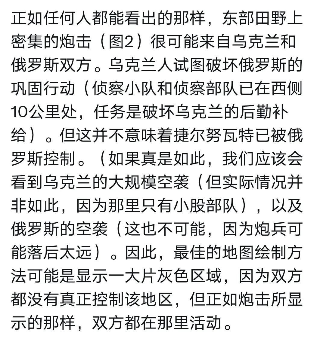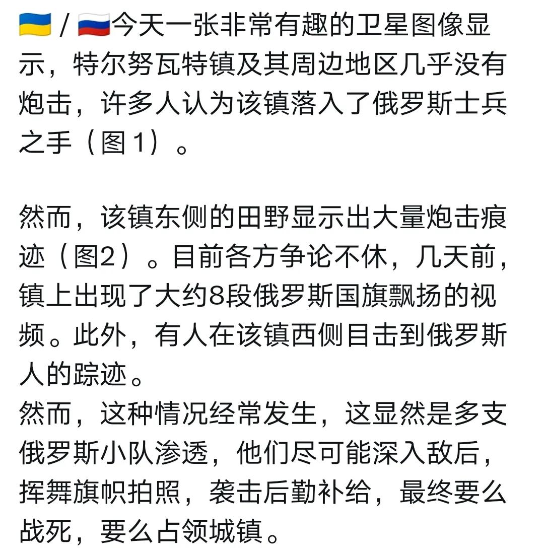 卫星图显示:特努瓦特仍在乌克兰手中(见图2)。此前有些媒体宣传俄罗斯人攻战特村,不过来自俄军的插旗行动。俄军去了,插旗。要么牺牲了,要么撤走。自然也不存在乌军特村大捷,因没有大规模行动。 特区东侧,弹点密集,说明是双方争夺灰色地带。 更多详情,请读附图。