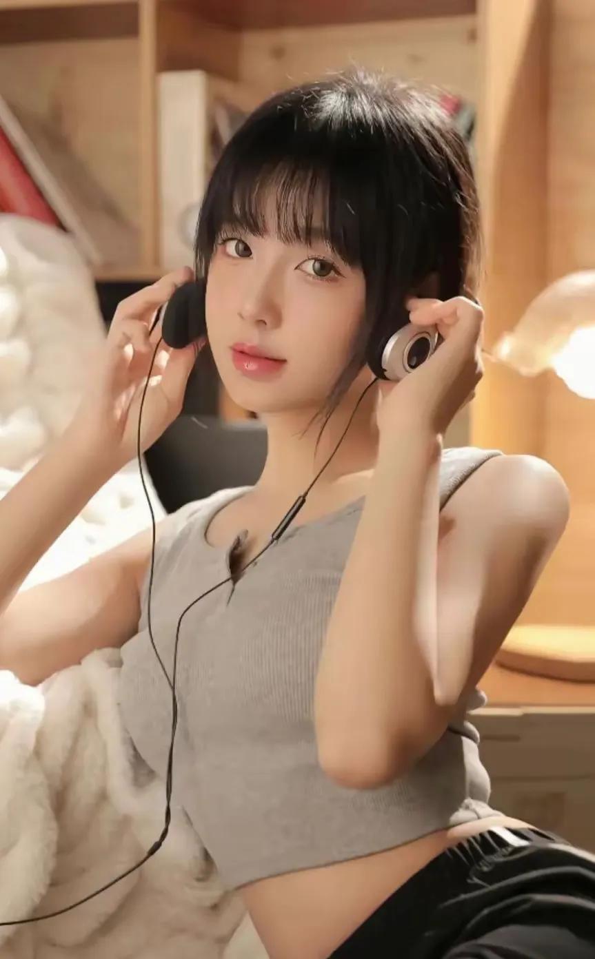 乌发如绸垂落泛柔光,白皙透润似玉。琥珀棕眸低垂藏温柔,睫卷纤长若蝶翼,挺鼻樱唇粉