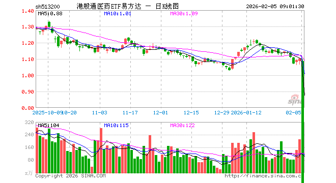 港股通医药ETF易方达(513200)业绩比较基准为中证港股通医药卫生综合指数收益率(使用估值汇率折算),管理人为易方达基金管理有限公司,基金经理为伍臣东,成立(2022-01-19)以来回报为9.92%,近一个月回报为5.38%。