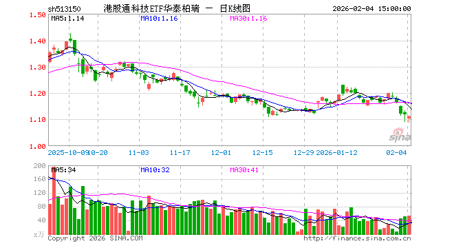2月4日,港股通科技ETF华泰柏瑞(513150)跌0.72%,成交额5884.64万元。当日份额增加450.00万份,最新份额为9905.98万份,近20个交易日份额减少650.00万份。最新资产净值计算值为1.09亿元。