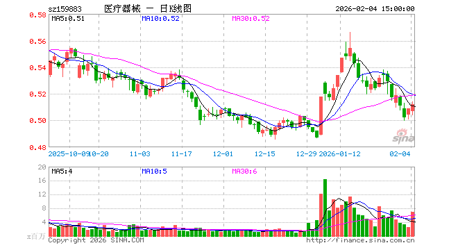 2月4日,医疗器械ETF(159883)涨0.59%,成交额3.51亿元。当日份额增加3.34亿份,最新份额为129.60亿份,近20个交易日份额增加36.26亿份。最新资产净值计算值为66.50亿元。