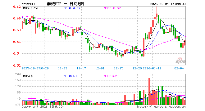2月4日,医疗器械指数ETF(159898)涨1.08%,成交额1715.24万元。当日份额减少300.00万份,最新份额为14.54亿份,近20个交易日份额增加5.08亿份。最新资产净值计算值为8.18亿元。