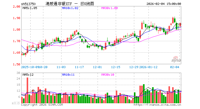 2月4日,港股通非银ETF(513750)涨1.87%,成交额18.47亿元。当日份额增加5950.00万份,最新份额为211.10亿份,近20个交易日份额增加38.80亿份。最新资产净值计算值为389.32亿元。