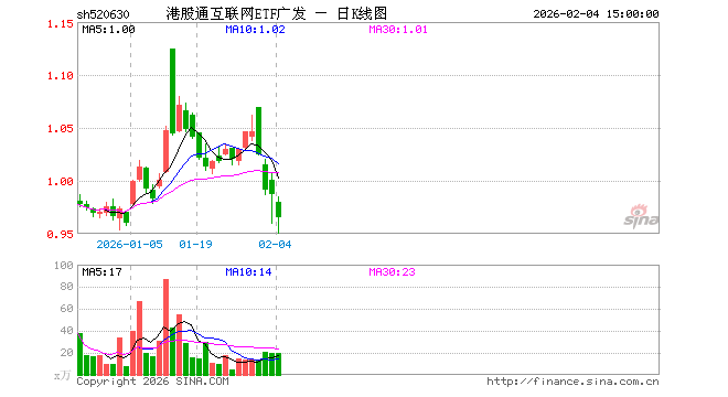 港股通互联网ETF广发(520630)业绩比较基准为同期中证港股通互联网指数收益率(使用估值汇率折算),管理人为广发基金管理有限公司,基金经理为夏浩洋,成立(2025-11-26)以来回报为-3.94%,近一个月回报为-0.91%。