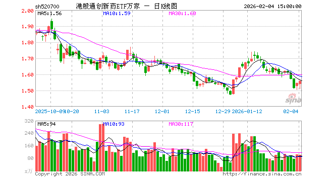 2月4日,港股通创新药ETF万家(520700)涨0.97%,成交额1.54亿元。当日份额减少100.00万份,最新份额为5.83亿份,近20个交易日份额减少600.00万份。最新资产净值计算值为9.08亿元。