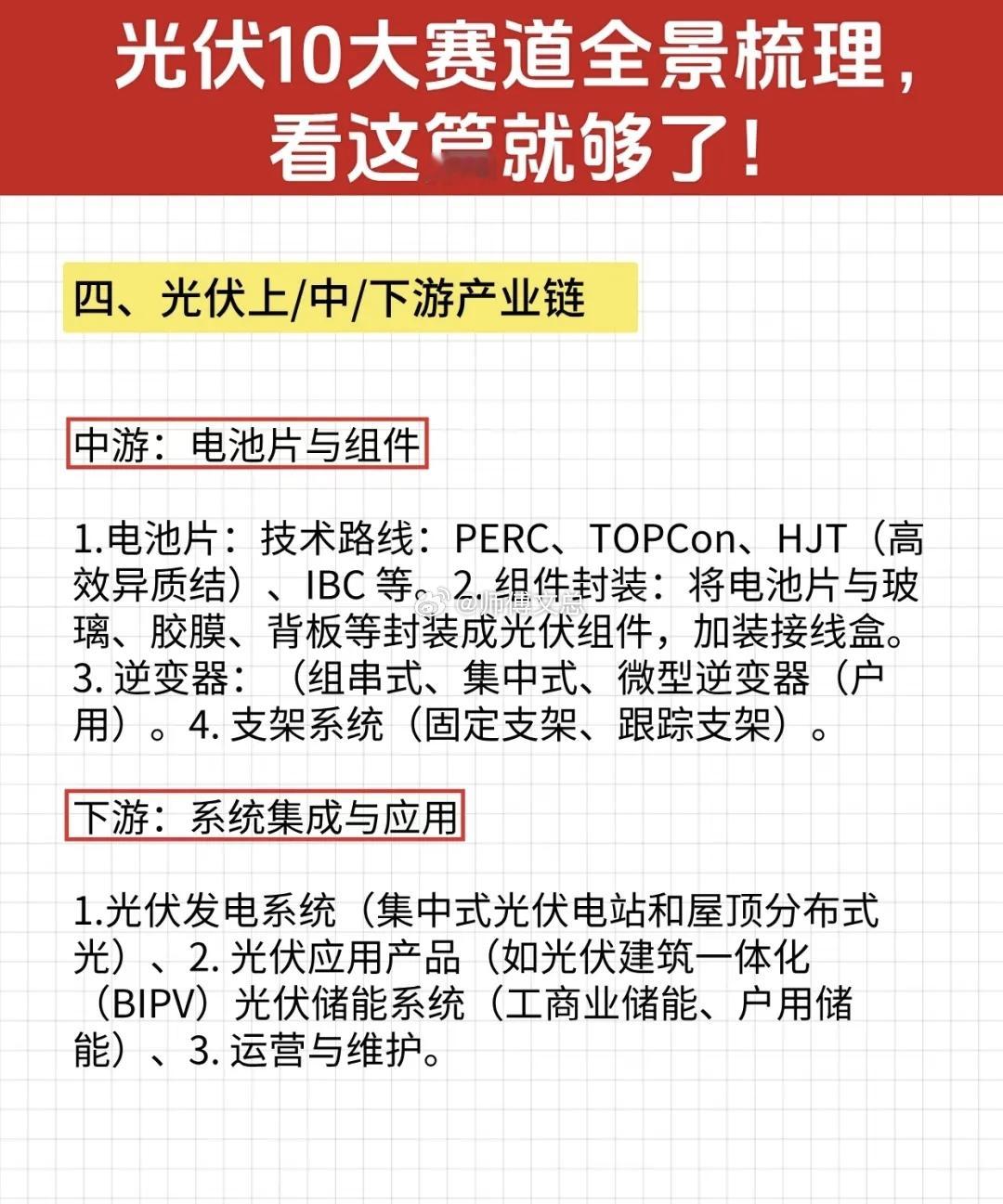 光伏10大赛道全景梳理,从上游硅料到下游应用,一文看懂全产业链!相关概念有组件、