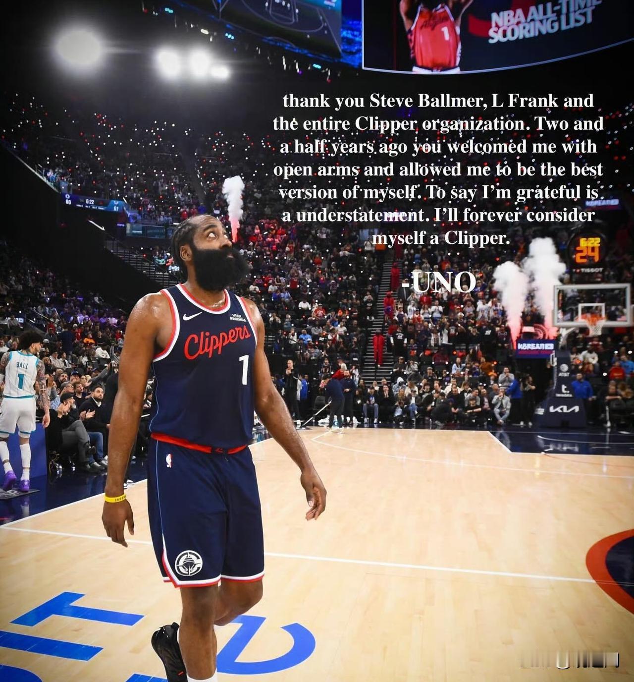 哈登发文感谢快船管理层: 第一时间发文向快船送上真挚致谢,字里行间满是不舍与感恩:“感谢鲍尔默、劳伦斯·弗兰克以及整个快船队管理层。两年半前,你们张开双臂欢迎我的到来,让我能做最好的自己。说我心怀感激,都远远不够。 我将永远把自己视作一名快船人。”这份告白不仅是对快船知遇之恩的回馈,更是对自己两年半快船生涯的深情总结,而他特意配上的,正是2026年1月13日对阵黄蜂、生涯总得分超越奥尼尔升至历史第九的经典瞬间。 这一幕既是他个人生涯的高光时刻,也是快船岁月里浓墨重彩的一笔,成为他留给快船最珍贵的记忆之一。哈登