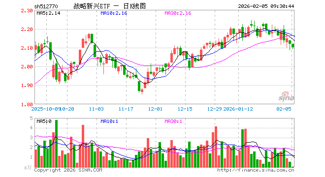 2月5日,战略新兴ETF(512770)开盘涨0.00%,报2.120元。战略新兴ETF(512770)重仓股方面,中际旭创开盘涨0.18%,新易盛跌2.05%,东方财富跌0.61%,寒武纪跌1.68%,立讯精密跌0.77%,阳光电源跌0.51%,胜宏科技跌1.56%,海光信息跌2.11%,恒瑞医药跌0.17%,药明康德涨0.51%。
