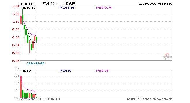 2月5日,电池ETF南方(159147)开盘跌0.10%,报0.961元。电池ETF南方(159147)重仓股方面,阳光电源开盘跌0.51%,宁德时代涨0.20%,三花智控跌2.23%,亿纬锂能跌1.16%,先导智能跌1.00%,天赐材料跌0.64%,格林美跌0.92%,国轩高科跌0.90%,多氟多跌0.55%,欣旺达跌0.67%。