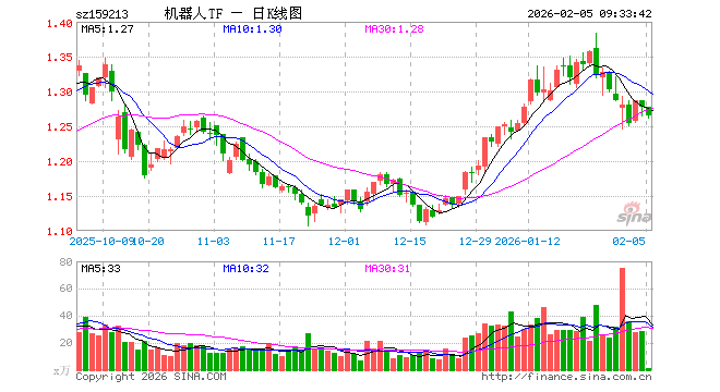 2月5日,机器人ETF汇添富(159213)开盘涨0.00%,报1.278元。机器人ETF汇添富(159213)重仓股方面,科大讯飞开盘跌1.37%,汇川技术涨0.01%,拓普集团跌0.90%,大华股份跌0.69%,大族激光跌0.62%,双环传动跌0.99%,石头科技涨0.14%,中控技术跌2.68%,绿的谐波跌3.01%,机器人跌0.29%。