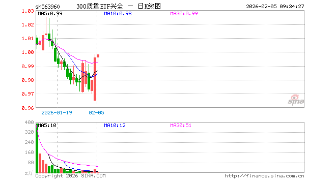 300质量ETF兴全(563960)业绩比较基准为沪深300质量指数收益率,管理人为兴证全球基金管理有限公司,基金经理为田大伟,成立(2025-12-05)以来回报为-0.17%,近一个月回报为-0.22%。