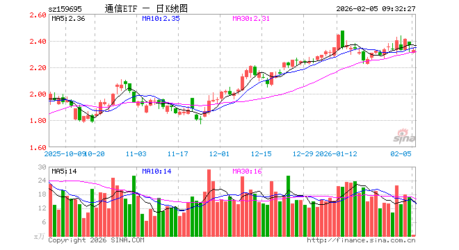2月5日,通信ETF嘉实(159695)开盘跌2.33%,报2.306元。通信ETF嘉实(159695)重仓股方面,中际旭创开盘涨0.18%,新易盛跌2.05%,中兴通讯跌1.05%,中国移动涨0.00%,中国电信跌0.17%,天孚通信跌5.00%,中国联通跌0.41%,信维通信跌3.61%,中天科技跌1.78%,亨通光电跌4.12%。