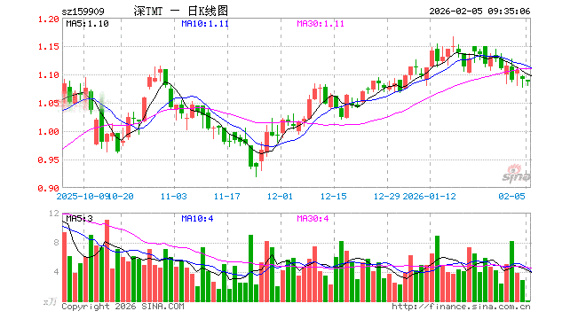 2月5日,TMT50ETF(159909)开盘跌0.18%,报1.090元。TMT50ETF(159909)重仓股方面,中际旭创开盘涨0.18%,新易盛跌2.05%,立讯精密跌0.77%,北方华创跌1.61%,胜宏科技跌1.56%,京东方A跌0.46%,中兴通讯跌1.05%,海康威视跌1.03%,东山精密跌1.56%,沪电股份跌1.28%。