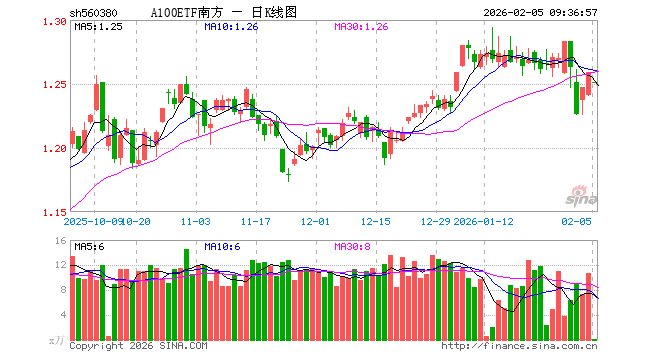 2月5日,A100ETF南方(560380)开盘跌0.64%,报1.251元。A100ETF南方(560380)重仓股方面,宁德时代开盘涨0.20%,贵州茅台跌0.33%,中国平安跌0.34%,中际旭创涨0.18%,紫金矿业跌2.63%,招商银行跌0.18%,美的集团涨0.03%,长江电力涨0.15%,东方财富跌0.61%,立讯精密跌0.77%。