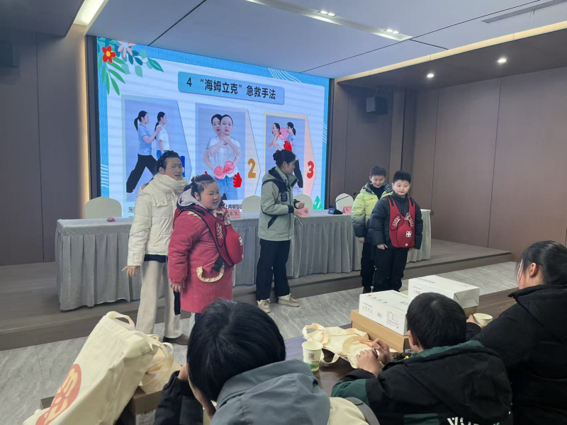 安全守护是成长的基石,急救知识的普及更是重中之重。为帮助孩子们掌握基本的应急自救技能,有效应对气管异物等突发情况,活动现场开展了海姆立克急救法科普教学。志愿者结合真实案例,用浅显易懂的语言,详细讲解了海姆立克急救法的原理、适用场景,以及针对儿童、成人等不同人群的具体操作要领,从异物卡喉的判断信号到按压位置、力度、频率的精准把控,都进行了细致拆解和示范演示。讲解结束后,志愿者热情邀请孩子们上前体验,手把手纠正孩子们的操作动作,耐心解答大家的疑问,现场互动氛围热烈。孩子们认真模仿、积极尝试,在实践中快速掌握了急救技巧,也进一步增强了自我保护意识和应急处置能力,为自身安全增添了一份保障。