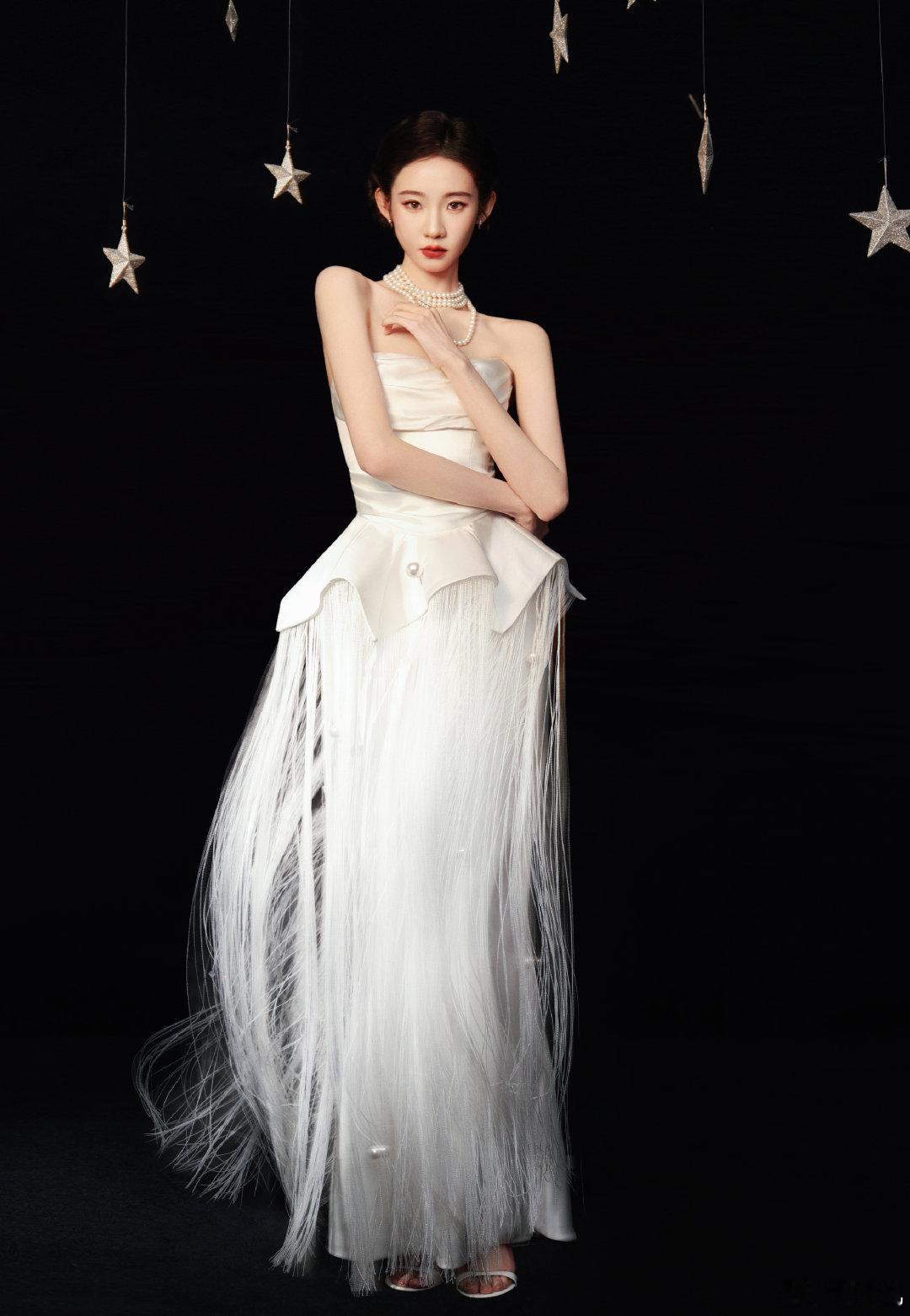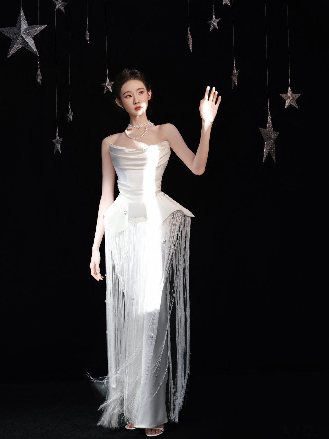 张艺凡复古摩登女郎张艺凡复古摩登女郎 白色流苏礼裙典雅复古,咱就说张艺凡的身材比