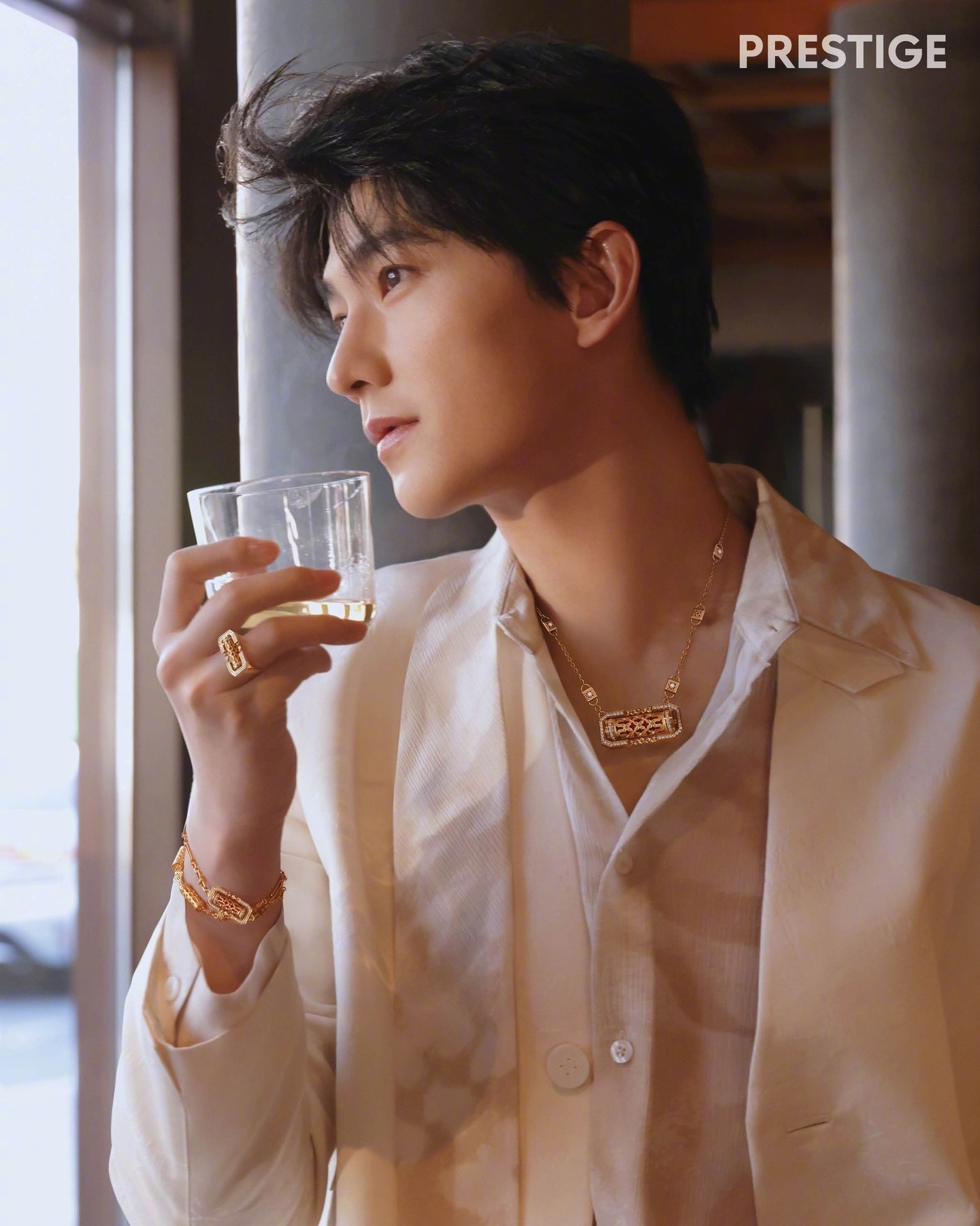 杨洋 Prestige HK 港版二月刊封面人物,佩戴着周大福金饰出镜,俊逸有型