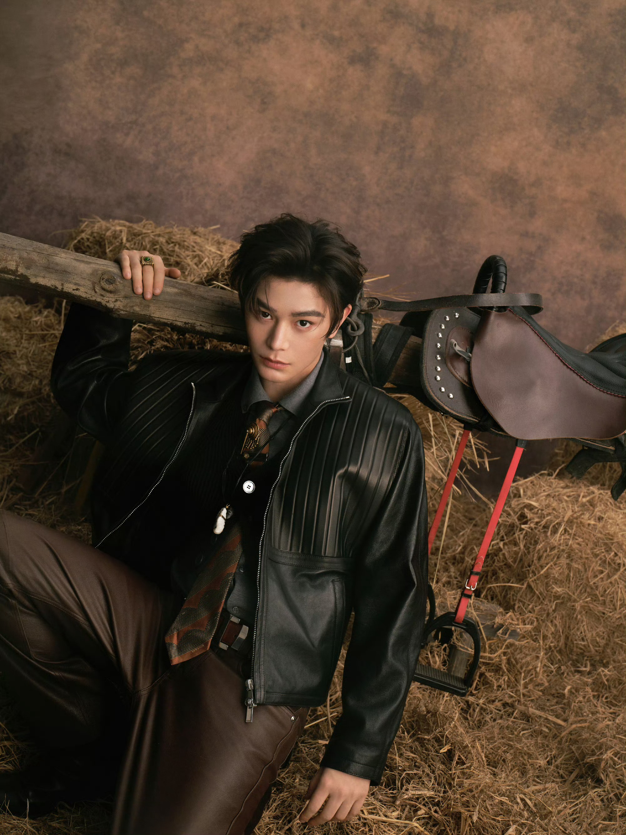 丁禹兮 今日 微博之夜 造型图集,作为全球代言人自然要穿Versace亮相,一身26春夏新装,利落硬朗的皮衣搭配“晒伤妆”,复古时髦的范思哲骑士。🤠📷 微博之夜出图 微博之夜红毯造型