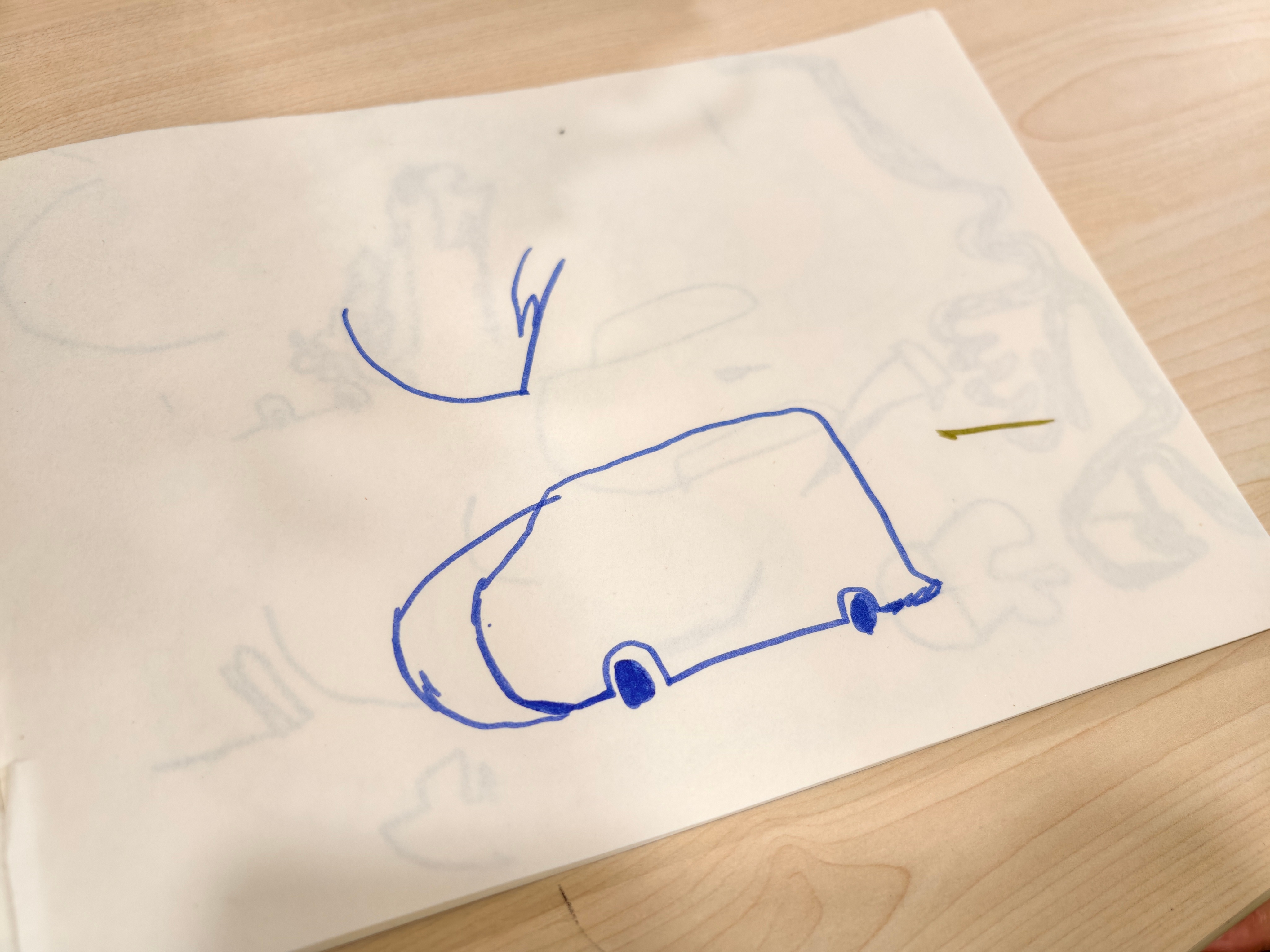 画册里有不少关于汽车与机械的绘画,在AI生成的时代,一支笔 + 未被打磨的想象力,稚嫩生动有趣。