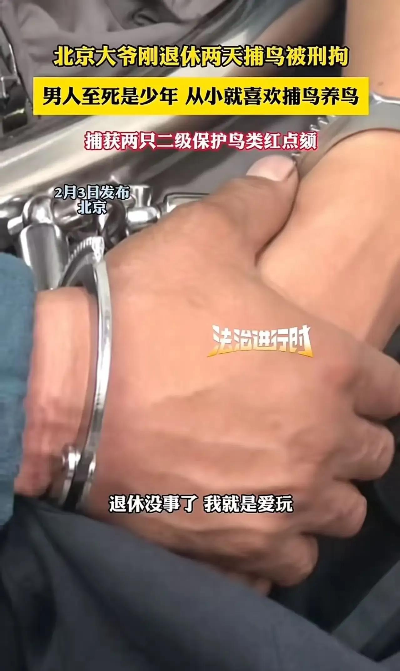 “吃了没文化的亏!”这句话最近在北京大爷身上应验了,刚退休两天就因为捕鸟被刑拘,