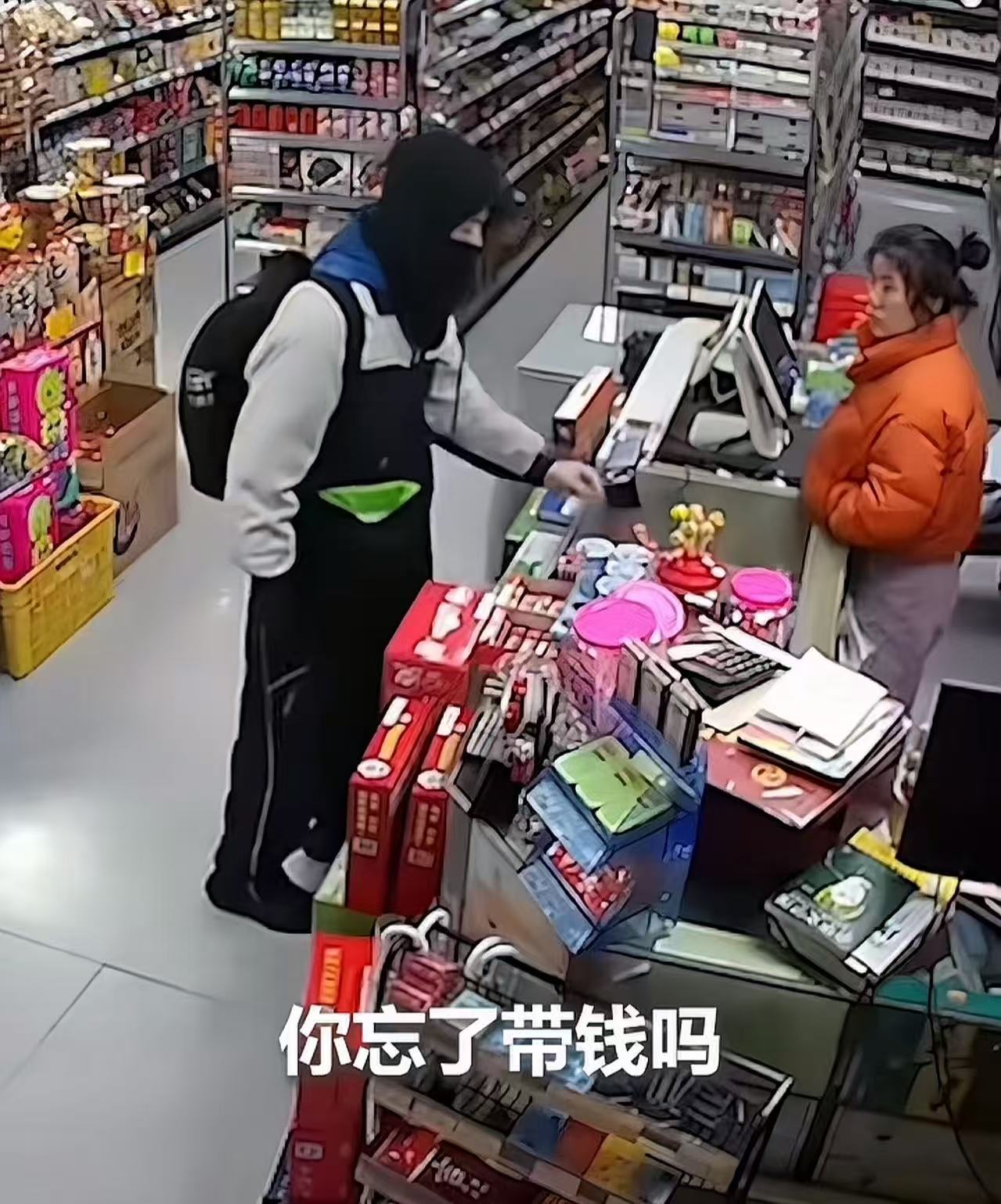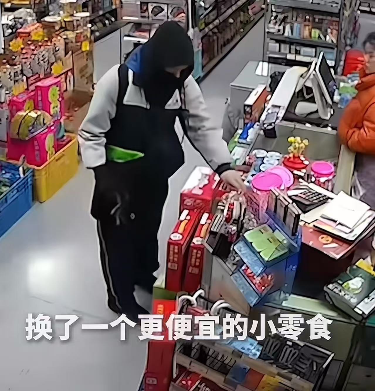 男孩愣了几秒,默默把面包放回原处,转而拿了一包更便宜的零食,低头准备结账。