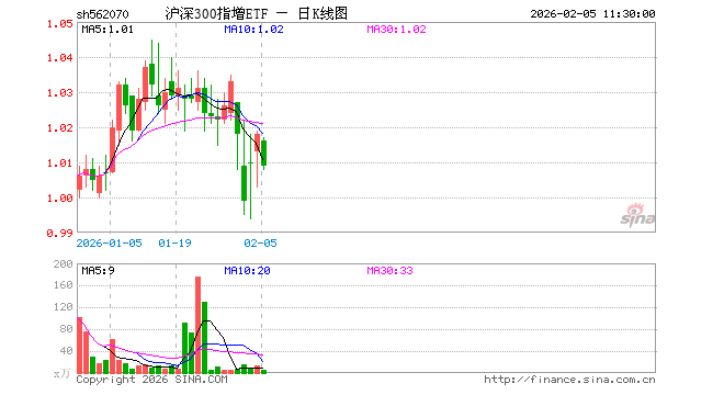 2月5日,截止午间收盘,沪深300指增ETF(562070)跌0.88%,报1.009元,成交额570.26万元。沪深300指增ETF(562070)重仓股方面,宁德时代截止午盘跌1.93%,贵州茅台涨1.41%,中国平安跌1.16%,紫金矿业跌5.29%,招商银行涨1.03%,兴业银行涨0.89%,中际旭创涨0.89%,新易盛跌3.37%,寒武纪跌1.59%,药明康德涨1.19%。