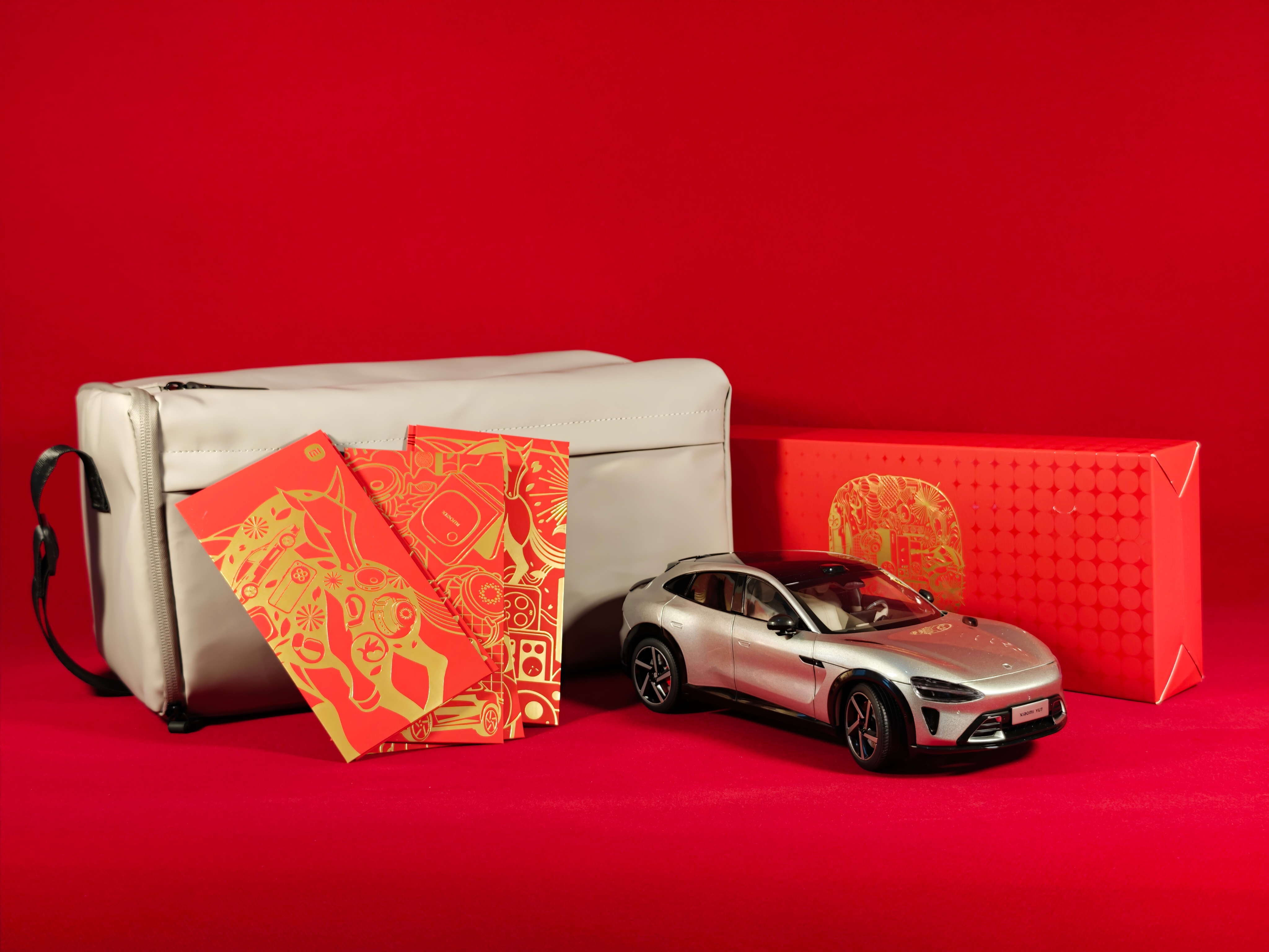 小米的新春礼盒~拿到的是一个钛金属YU7车模,做得超级精致。还有好多小米元素红包