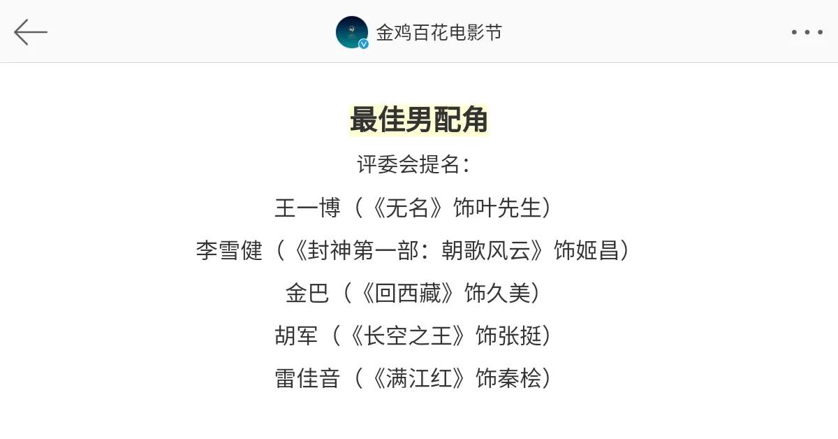 笑发财了,破防饭圈对着🧣之夜的海报分析咖位有什么用,还用站在影帝旁来证明咖位,还想用站位去踩别人。糊咖为了去一个堂会都要买氵投票,真的大咖谁还用投票? 王一博不需要投票,不需要站在谁旁边,只会和这些实力派演员争影帝: 最受传媒关注男主角提名:吴京、沈腾等。王一博获奖。 第36届金鸡最佳男配角提名:王一博、李雪健、金巴、胡军、雷佳音 第37届金鸡最佳男主角提名:王一博、沈腾、林保怡、金巴、彭昱畅、雷佳音。 第20届华表奖最佳男演员:王一博、张译