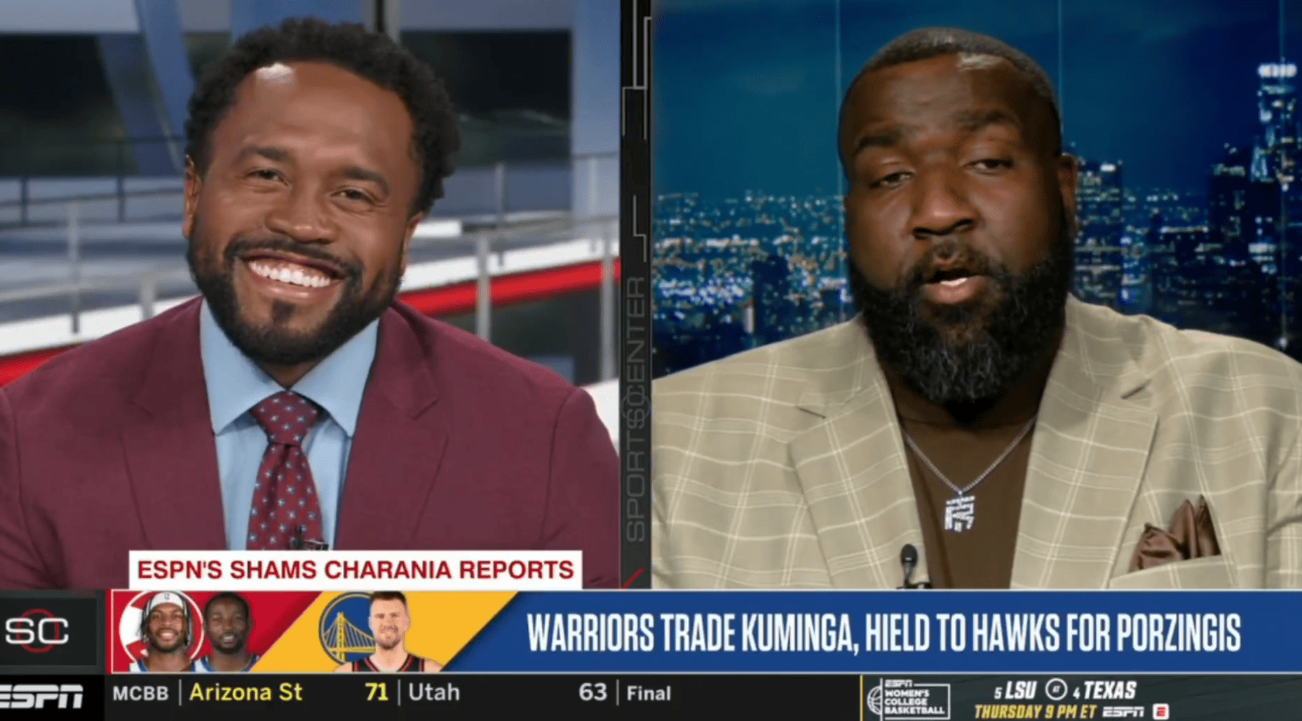 虎扑02月05日讯根据shams报道,勇士将乔纳森-库明加和巴迪-希尔德交易到老鹰,换来克里斯塔普斯-波尔津吉斯。