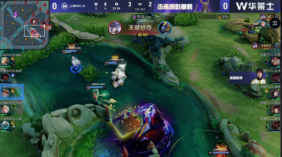 大海达摩率先动手集火航航云缨,后续安凉抢下暴君打出2换1