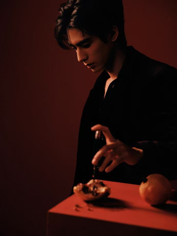 宋威龙红丝绒深V 暗红色丝绒质感绝了!宋威龙深V露锁骨,每一寸都长在审美上