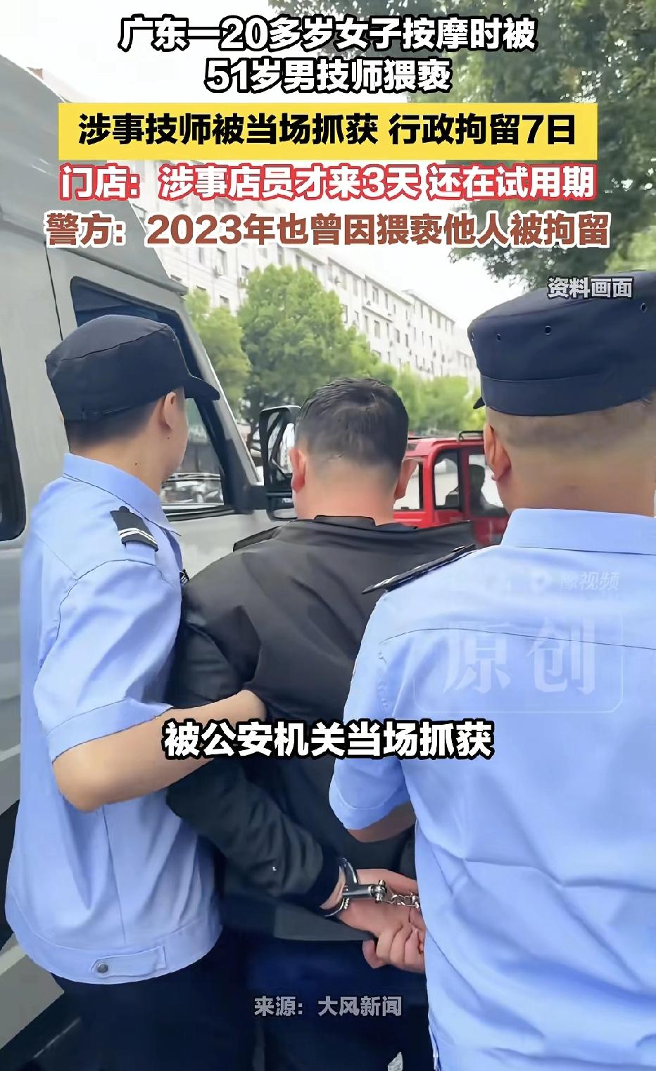 广东天河,51岁男子去按摩店上班的第3天,他给20多岁女子按摩时,趁机摸了女子隐私部位,女子报警,男子被行拘7天,女子得知男子有猥亵前科,向店家追责,店家却以免费按摩补偿,遭女子拒绝,她表示难道要我重温被猥亵的经历? 女子作为受害者,她在按摩店被男技师猥亵了,心里又气又委屈,专门找去店里想讨个公道。 可她万万没想到,自己是受害者,店家居然还提议让她免费再去按摩,这不是往她心上捅刀子嘛! 女子不接受按摩店提出的赔偿,将通过法律途径维护自己的合法权益,要求店家承担相应的赔偿责任。 事情是这样的,女子想找家按摩店放松一下肩颈。 她走进了公司附近这家看似正规的门店,前台热情接待后,安排了技师刘某。 当时女子并未多想,只知道刘某是店里的新人,刚上班第三天。 按摩一开始还算正常,刘某的手法不算专业,但也算中规中矩。 可随着时间推移,女子渐渐觉得不对劲。刘某的手开始频繁偏离按摩部位,有意无意地触碰她的手臂和腰侧。 女子起初以为是无意之举,刻意调整了姿势并提醒对方“按重点部位就好”。 没想到,这一提醒非但没有让刘某收敛,反而让他更加肆无忌惮。 在按摩背部时,刘某的手突然下滑,直接触碰了陈女士的隐私部位和屁股。 “当时我浑身汗毛都竖起来了,又惊又怒。”女子回忆道,她立刻推开刘某,抓起衣物跑到大厅,当场拨打了报警电话。 民警迅速赶到现场,刘某对自己的猥亵行为供认不讳。 最终,依据《治安管理处罚法》第44条规定,猥亵他人,或在公共场所故意裸露身体且情节恶劣的,处5日以上10日以下拘留 。 刘某因猥亵他人被依法行政拘留7天。 本以为事情就此告一段落,女子却在后续与警方的沟通中得知了更令人震惊的消息。 刘某并非初犯,此前就曾因猥亵他人被公安机关拘留过。 女子表示,知道刘某有前科的那一刻,她后背都发凉。 她无法理解,一家对外宣称“正规经营”的按摩店,怎么会录用有猥亵前科的人,而且还让其直接为女性顾客提供服务。 带着愤怒和不解,女子找到按摩店讨要说法。 她认为,店家在招聘时未尽到审核义务,才导致自己遭遇这样的事情,店家理应承担相应的责任并给出合理的赔偿。 然而,店家的回应却让她大跌眼镜。 店家负责人不仅没有丝毫歉意,反而轻描淡写地表示:“这事是技师个人行为,和店里没关系。不过我们可以给你提供几次免费按摩,就当是补偿了。” “免费按摩?难道要我再回到这个让我遭受侵犯的地方,重温一次噩梦吗?”陈女士当场怒斥拒绝。 在她看来,店家的这个提议不仅毫无诚意,更是对她的二次伤害。 有网友说,谁去按摩不是图个放松,结果遇上这种事,换谁都有心理阴影了,免费按摩谁要啊! 支持女子拒绝!免费按摩就是二次伤害,店家该道歉该赔偿,不是拿这种敷衍的办法了事! 也有网友表示,商家不能甩锅给员工,招聘不审核就是最大的问题,必须承担相应责任! 女子做得对,一定要走法律途径,不能就这么算了,给其他受害者也立个榜样! 遇到不法侵害,千万别沉默!及时报警,是对自己的保护,也是让违法者付出代价的关键。 女子的勇敢维权,给所有人都敲响了警钟:面对侵犯,勇敢说不、及时求助,法律永远是我们最坚实的后盾。