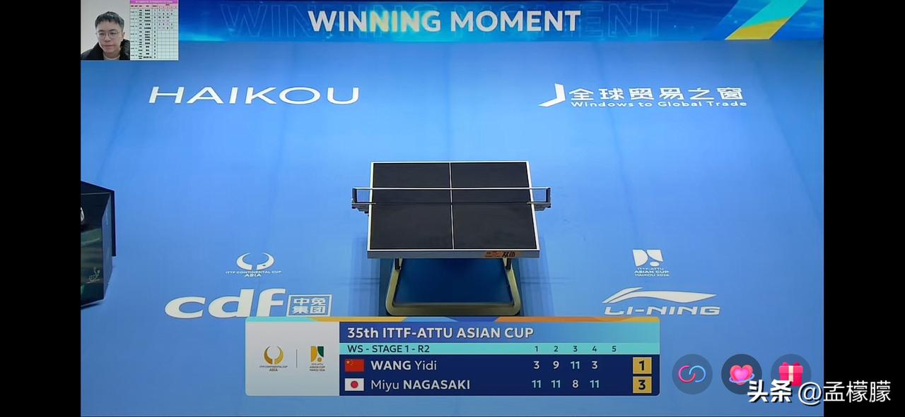 小组循环赛第二轮,孙颖莎小组头名出线,韩国名将两连败出局 北京时间2月5日11:30,2026中国·海口乒乓球亚洲杯 小组循环赛第二轮开拍,孙颖莎 【爆冷:】 1、男单小组循环赛第二轮:张禹珍2-3篠塚大登,韩国一哥张禹珍两连败,出线无望 2、女单小组循环赛第二轮:王艺迪🇨🇳1-3长崎美柚 【重点比赛结果:】 [1号桌] 11:00女单小组循环赛第二轮:陈幸同🇨🇳3-1杜凯琹 11:35男单小组循环赛第二轮:宇田幸矢3-0陈俊菘🇨🇳 12:10女单小组循环赛第二轮:孙颖莎🇨🇳3-0玛尼卡・巴特拉 12:45男单小组循环赛第二轮:林诗栋🇨🇳3-0郭冠宏13:20女单小组循环赛第二轮:蒯曼🇨🇳3-0曾尖 [2号桌] 13:20男单小组循环赛第二轮:向鹏🇨🇳3-0基里尔・格拉斯门科 [3号桌] 11:00男单小组循环赛第二轮:张禹珍2-3篠塚大登 11:35女单小组循环赛第二轮:王艺迪🇨🇳1-3长崎美柚 亚洲杯乒乓球赛 亚洲杯国乒 国乒亚洲杯 乒乓亚洲杯
