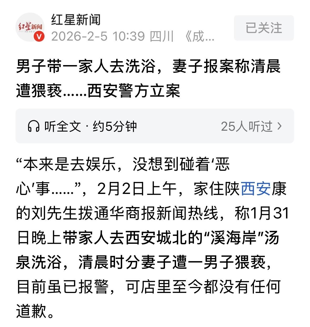 陕西西安,女子在洗浴中心睡觉,感觉旁边的男子碰了下她的脚,她蹬了一下腿反抗,对方竟又蹭了下,女子觉得自己被猥亵了,连忙告诉丈夫,男子却说自己是无意碰到的,为了查出个真相,夫妻俩要求店家调监控,前台却说看不了,女子只好报警,结局让男子傻眼。 1月31号晚上,刘先生带着老婆孩子,一家三口去了一家汤泉洗浴中心消遣。 刘先生花1200块钱买的套票,包含洗澡、搓澡、头疗还能过夜。 那天晚上9点多进的场,洗完澡、搓完背,已经是深夜11点半了。 一家人本来想去二楼休息室歇着,结果到了地方一看,人满为患,连个下脚的地儿都没有。 没办法,服务员指了条路,说电玩室里能躺。 这电玩室大概有30平米,进门是个木地板搭起来的台子,高出地面30多厘米。 上面光秃秃的,连个枕头被子都没有,但也只能凑合了。 当时里面已经有五六个人,刘先生一家就找了个角落躺下了。 因为太累,刘先生睡得沉,一直到凌晨5点50分才醒,起身去大厅溜达。 这时候,老婆和孩子还在电玩室睡着。大概早上6点50分左右,迷迷糊糊的刘太太感觉脚边不对劲。有人在碰她的脚! 她下意识地蹬了一下腿,想着对方该收手了。可没想到,那只手或者是腿,居然又凑了上来,甚至还有意地蹭了一下。 刘太太当时就吓醒了,既觉得膈应,又心里发毛,但因为胆小,加上对方是个陌生人,她没敢当场大喊大叫。 一直熬到7点多,孩子醒了,刘先生也溜达回来了。 刘先生一回来,就看见妻子身边蹲着个20来岁的陌生男子。他就冲过去问,说你干啥的?在这干啥? 那男的一声不吭,像个闷葫芦。后来妻子才告诉他,自己被猥亵了。然而,那男子坚称自己是无意的,只是碰了一下。 碰一下?有这么碰的吗?刘先生气得不行,一把拽住那男的不让走,说要去调监控。 让他没想到的是,到了前台,工作人员却告诉他,监控不能看。 这一句话让刘先生火冒三丈,这不是明摆着护短吗?没办法,他让妻子赶紧报警。 7点13分,刘太太拨通了110。 民警到场后,直接调取了监控录像,证实了刘先生的说法。那个陌生男子确实有猥亵行为,被抓了个现行。 但让刘先生一家最寒心的,不是那个猥琐男,而是店家的态度。 从报警、做笔录,一直到离开洗浴中心,店里的负责人从头到尾没露过面,连个服务员都没过来说句“对不起”或者“受惊了”。 刘先生不悦地说:我们花了钱来消费,在你们店里出的事,你们连个态度都没有?这给我老婆孩子留下多大心理阴影,他们心里没数吗? 2月2号,记者去这家店采访。一进门,闸机口的女工作人员一听要问这事,立马拿起手机发短信找领导。 过了一会儿,她说领导在外面开会呢,这事我们不接受采访,你们去派出所问吧。 记者问二楼有没有电玩区,她说有。 记者在大厅门口的屏幕上看到,这家店写着“24小时营业”,还有条规定:凌晨2点到6点过夜的贵宾,加收30元/人过夜费”,而且过夜人员必须登记身份证。 可刘先生说了,他买的套票里没交这30块钱,而且进来的时候,压根就没人让他登记身份证。 如果登记了,那男的敢这么明目张胆? 现在的情况是,警方已经以猥亵案立案了,。派出所的警官说,要采访得去分局办手续。 刘先生现在就想讨个说法。钱花了是小事,一家人的安全感被打破了,店家却像个没事人一样。 哪怕你出来说句“我们管理不到位,以后改进”,心里也能好受点。 那从法律角度,怎么看这件事? 《民法典》第1198条规定:经营场所、公共场所的经营者、管理者或者群众性活动的组织者,未尽到安全保障义务,造成他人损害的,应当承担侵权责任。因第三人的行为造成他人损害的,由第三人承担侵权责任;经营者、管理者或者组织者未尽到安全保障义务的,承担相应的补充责任。 洗浴中心作为收费的经营场所,对顾客负有法定的安全保障义务。 首先,店方管理存在明显疏漏。事发时电玩室男女混住、无物理隔离,且未按规定登记身份证信息,导致陌生男子能随意接近受害人,这属于“未尽到合理限度的安全保障义务”。 其次,事发后店方拒绝提供监控、未及时道歉及协助,进一步违背了义务。 法律上,猥亵男子作为第三人应承担主要侵权责任。但洗浴中心因管理混乱,比如过夜费收取与身份核验缺失、休息区监管缺位,未尽到保障顾客人身安全的责任,依法应承担“相应的补充责任”。 刘先生一家不仅可向猥亵者索赔,也有权要求洗浴中心就其管理过错承担补充赔偿责任,包括精神损害抚慰金。 对此,你怎么看? 关注@运良说法 学法律知识不迷路