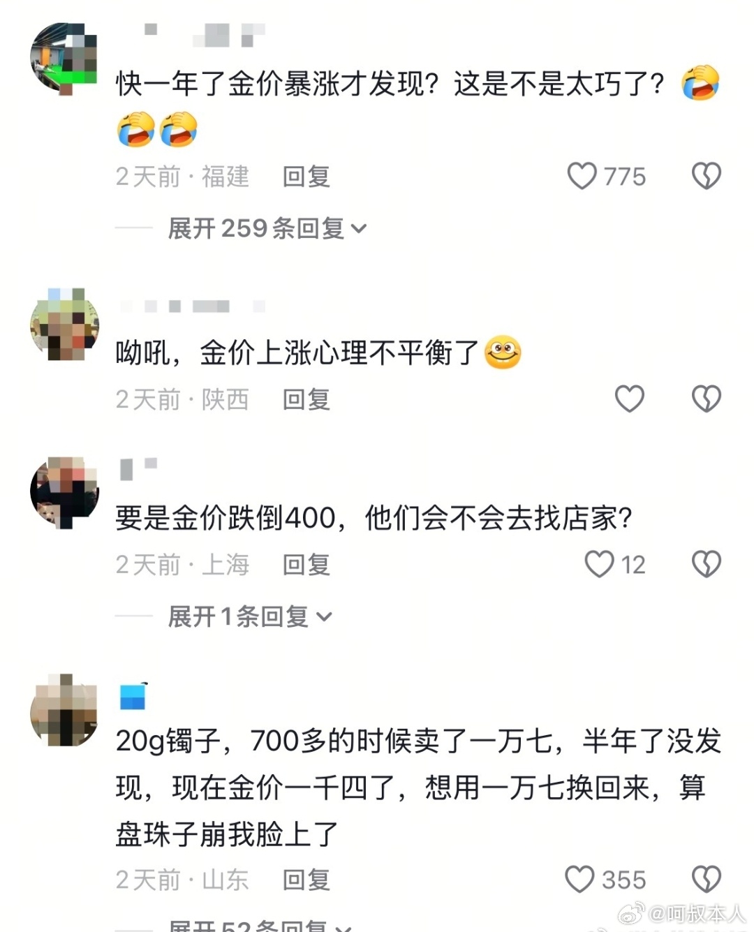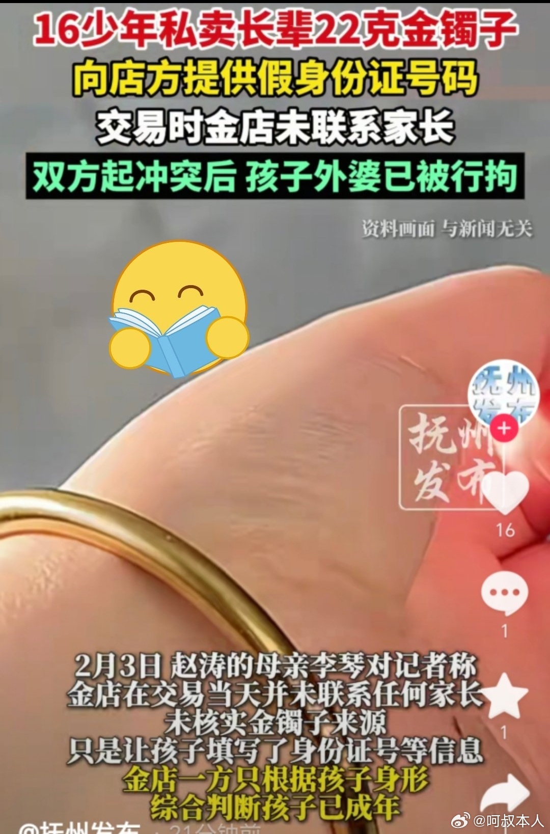 孩子1.7万私卖22克金镯妈妈发声半年后才退都知道家长心里算盘,但是金店收的不合规,就得为这个买单!未成年人卖金银这肯定不是他的东西,非偷即抢,卖的时候要身份登记和拍照,这个过程店家柜姐肯定知道,心里明的跟镜似的,这种不合规手段能买卖成功就是金店没有尽到自己的义务还想占便宜,不明不白的交易,代价就是后面有麻烦事,这不就来了……这家长也是一点原则都没有,孩子卖了半年自己早就知道了,无非就是对比了价格之后觉得正常,现在涨价了想耍赖,去就去呗还把自己老妈带去,准备干什么,撒泼打滚么……官方回应孩子卖金镯半年后家长要退打金店1个月垃圾扫出金粉值200万
