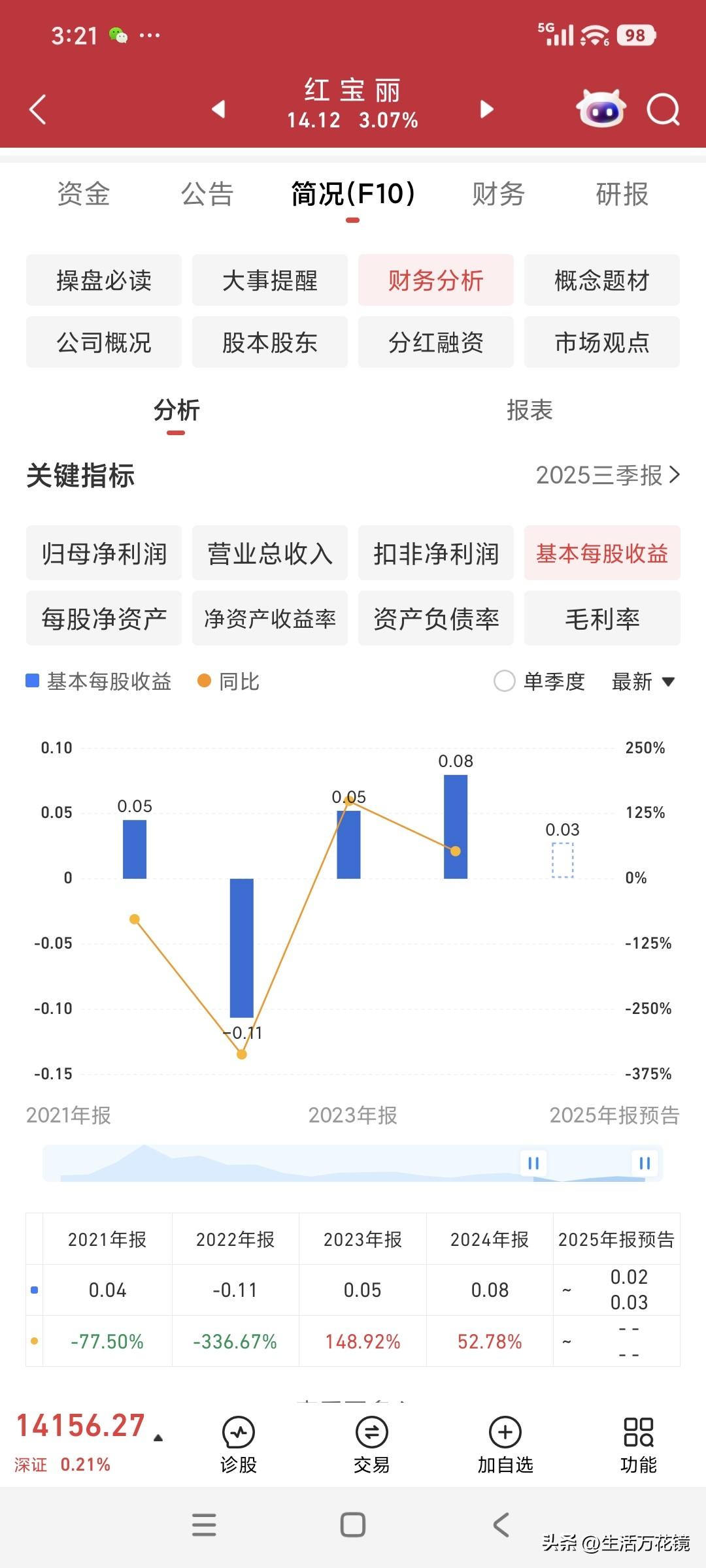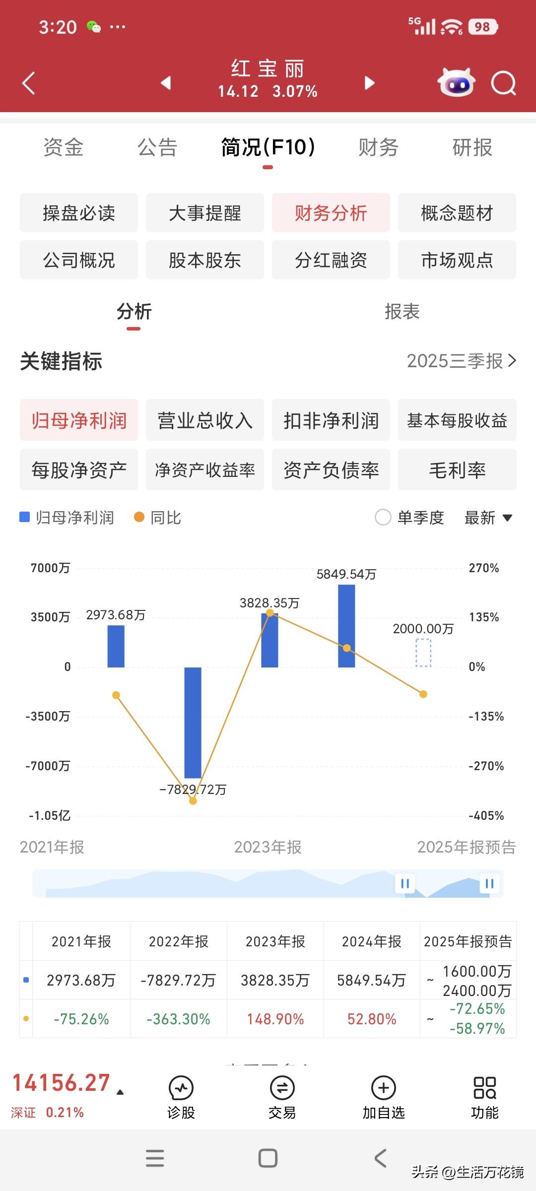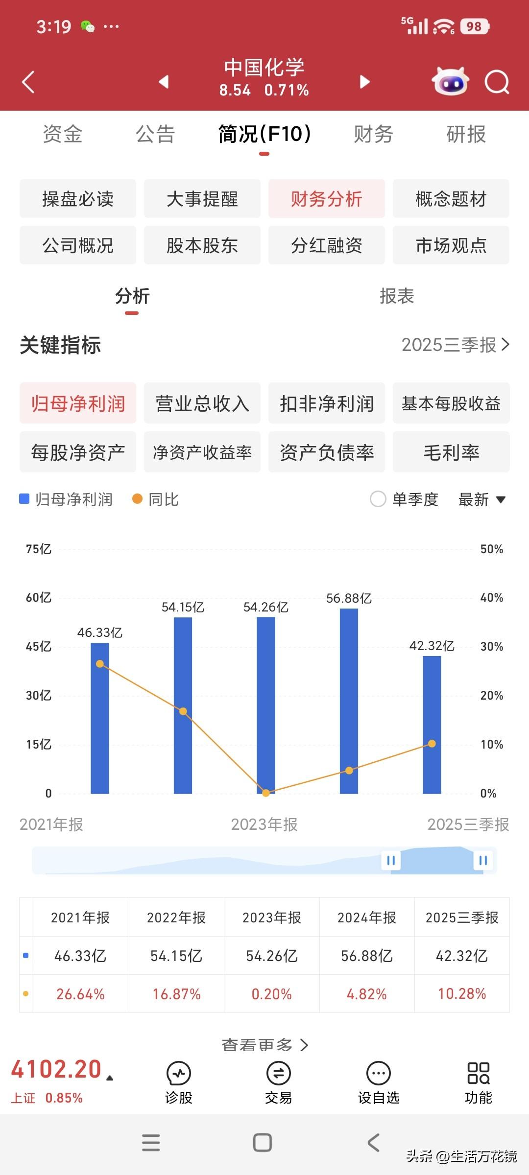 从中国化学(收盘价8.38元)对决红宝丽(收盘价12.91元),看价值投资在A股受冷遇的困境 中国化学为中盘股,流通股达60.9亿,基本每股收益0.69元(图1)。 红宝丽是小盘股,流通股7.28亿,同样属于化学概念股,但其基本每股收益仅0.03元(图2)。 2025年三季度,中国化学归母净利润42.32亿(图3)。 同年三季度,红宝丽归母净利润仅2000万元(图4)。 二者唯一的差别就在于流通盘的大小。 依照价值投资理念,中国化学理应远超红宝丽,然而现实却是红宝丽每股股价比中国化学高出4.53元,着实令人诧异,倍感尴尬。 红宝丽股票 化学制药股票 中化学公司