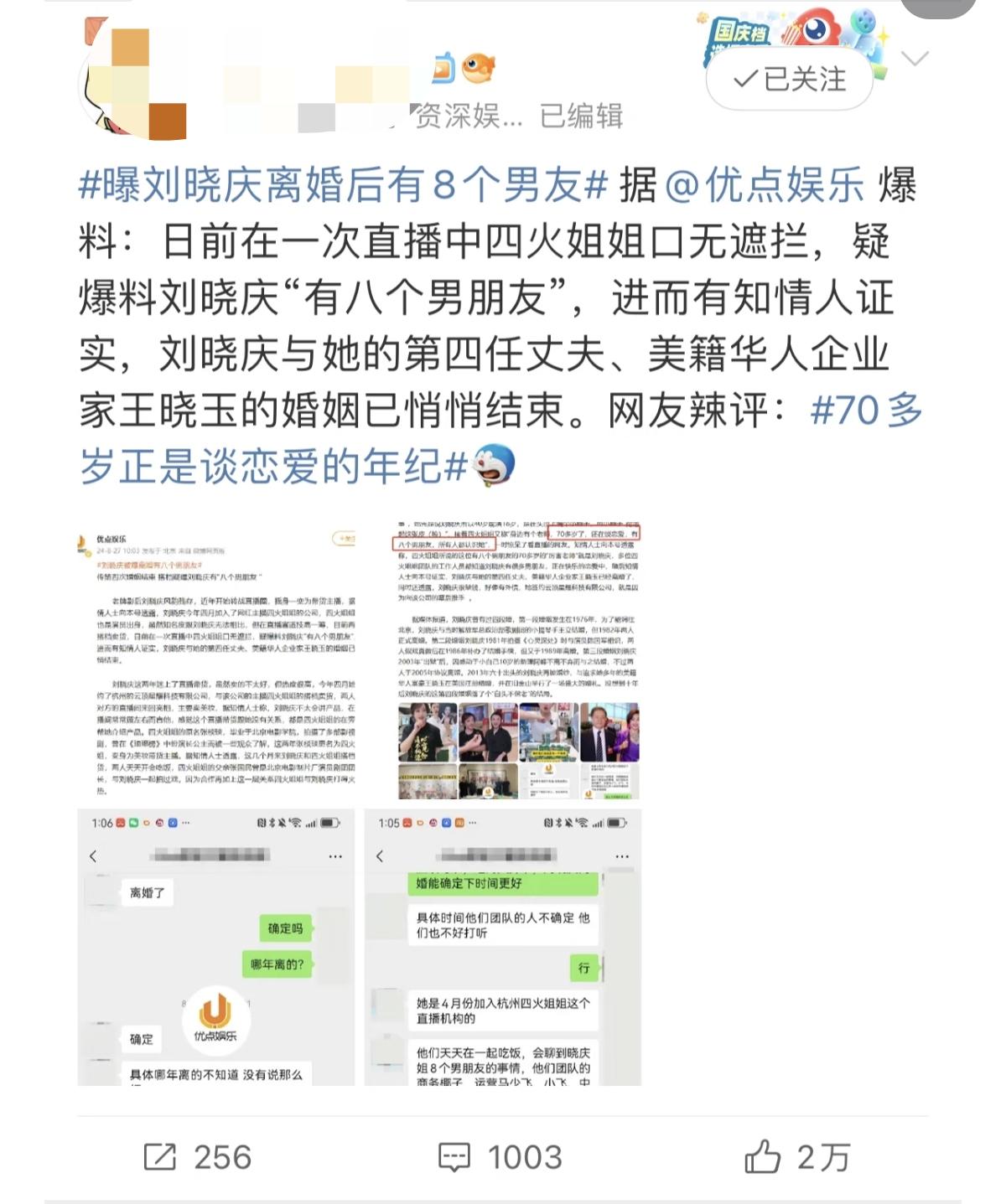 女频都不敢写:70 岁奶奶嫁入豪门,青梅竹马埋下的感情,跟年龄外貌的关系其实不大。年轻时真的要多见人啊...奶奶应该也是蛮有气质那一挂的,而且奶奶本身有养老金又有资产,她有权说“不”。 这下短剧又有新剧本了,很适合让刘晓庆演,不过庆奶的人生剧本更爽,她前夫发现她外面有人,大闹一场离婚了,几年后写书:如果知道离开她这么痛苦当年就不该离婚。 去年她的绯闻闹上热搜,就是一个比她小20岁的男的想要名分 自己出来爆料,庆奶理都没理他。她现任老公追了她好多年,本来因为上一段婚姻她不准备再结婚了,结果男士说只要能结婚什么都行,分了她一大笔资产。 经济上不依靠别人、精神上不依赖别人、事业上不仰仗别人,我辈楷模! 黄昏恋 刘晓庆