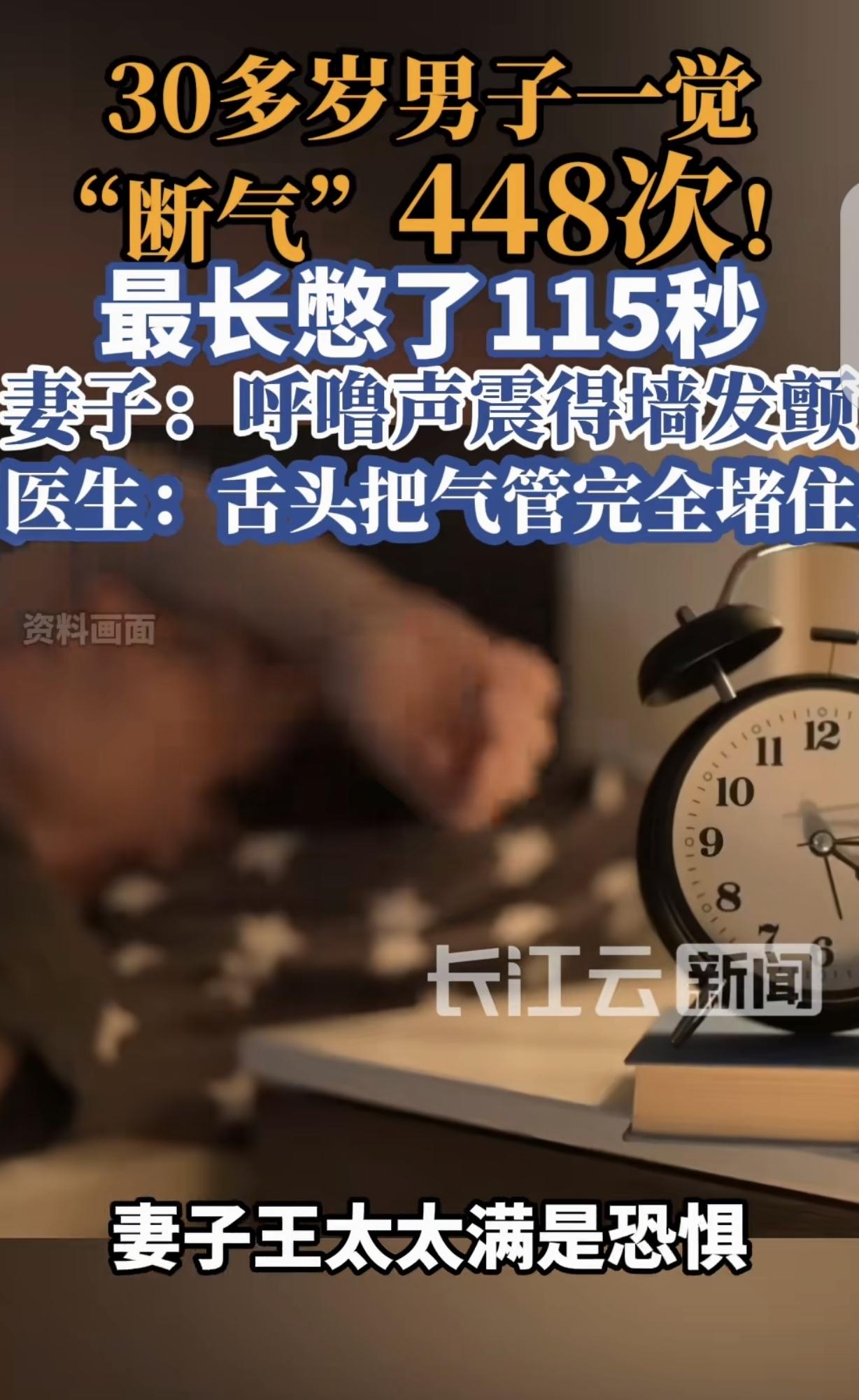 “太瘆人了!”福建,一30多岁男子晚上睡觉,竟然一夜“断气”448次,最长一次憋气115秒。妻子惊醒,发现丈夫没气了,吓得大呼小叫,直到2分钟后,丈夫才开始喘气,女子真怕丈夫睡过去再也醒不来,第二天赶紧带他去了医院,诊断结果,让女子后怕不已。 王先生才30多岁,可睡觉的时候,呼噜大的好像能把房盖掀起来,导致王太太妻子苦不堪言。 这个年纪的夫妻,正是感情如胶似漆的时候,如果分居吧,王太太怕影响夫妻感情,如果同床共枕吧,她被丈夫呼噜吵得睡不着。 而且,王太太也不敢跟丈夫分别睡在两个房间,因为她发现,丈夫经常睡着睡着就故意骤停,刚才还呼噜打的震天响,突然就戛然而止,无声无息了。 吓得王太太赶紧用手去试丈夫的鼻息,竟发现丈夫不喘气了,最长的一次,2分钟后才恢复正常。 我滴个妈呀,这太吓人了,王太太生怕丈夫一下子睡过去,如果自己不在他身边,他没气了不能及时发现,再有什么闪失,到时候后悔都来不及了。 所以,王太太宁可自己睡不好,也和丈夫同床共枕,时不时的看着他点。 可这一次,王先生再次出现这样的状况,这让王太太非常害怕,她怕丈夫一睡不醒,她决定不能不当回事了,立马带丈夫去了医院。 医生用睡眠监测仪器,给王先生做了监测,结果让王太太倒吸一口凉气,丈夫一夜竟然“断气”448次,最长一次憋了115秒,将近一分钟了。 也就是说,这448次断气,他随时都可能醒不过来,而他之所以这样,是因为王先生舌头把气管完全堵塞了。 最终,王先生被确诊为重度阻塞性睡眠呼吸暂停伴低氧血症,如果长此以往,会加重心脑血管负担,缩短寿命,必须治疗。 王太太庆幸,幸亏带丈夫来看病了,否则真是随时有生命危险。 这事看完真让人后背发凉,多少人都觉得呼噜是睡得香的表现,哪知道背后藏着这么大的危险。 王太太能留点心真是救了丈夫一命,换做不少人可能就稀里糊涂过去了。 现在年轻人生活不规律,熬夜久坐,胖了还不当回事,其实这些都是睡眠呼吸暂停的高危因素。 就像王先生这样,舌头堵了气管,相当于睡梦里反复被憋醒,身体一直在缺氧,时间长了心脏、脑子肯定扛不住,说不定哪天睡过去就再也醒不来了。 说句实在话,很多人对这种“隐形杀手”根本没概念。平时别不当回事,晚上呼噜特别响、白天总犯困,甚至睡醒了头疼,这些都可能是信号。真得趁早去医院查一查,别等出事了才后悔。 对此,你怎么看? 关注@运良说法