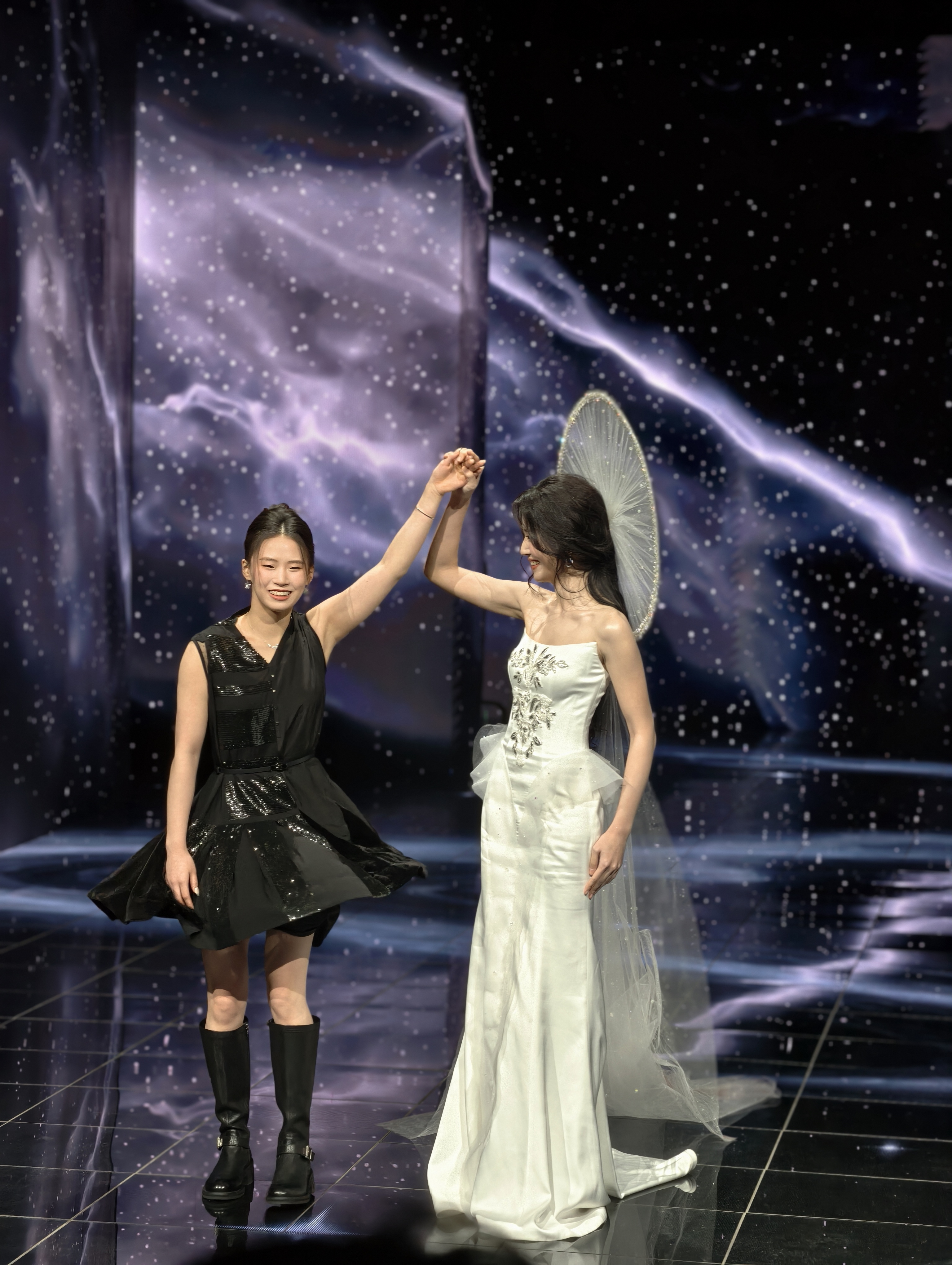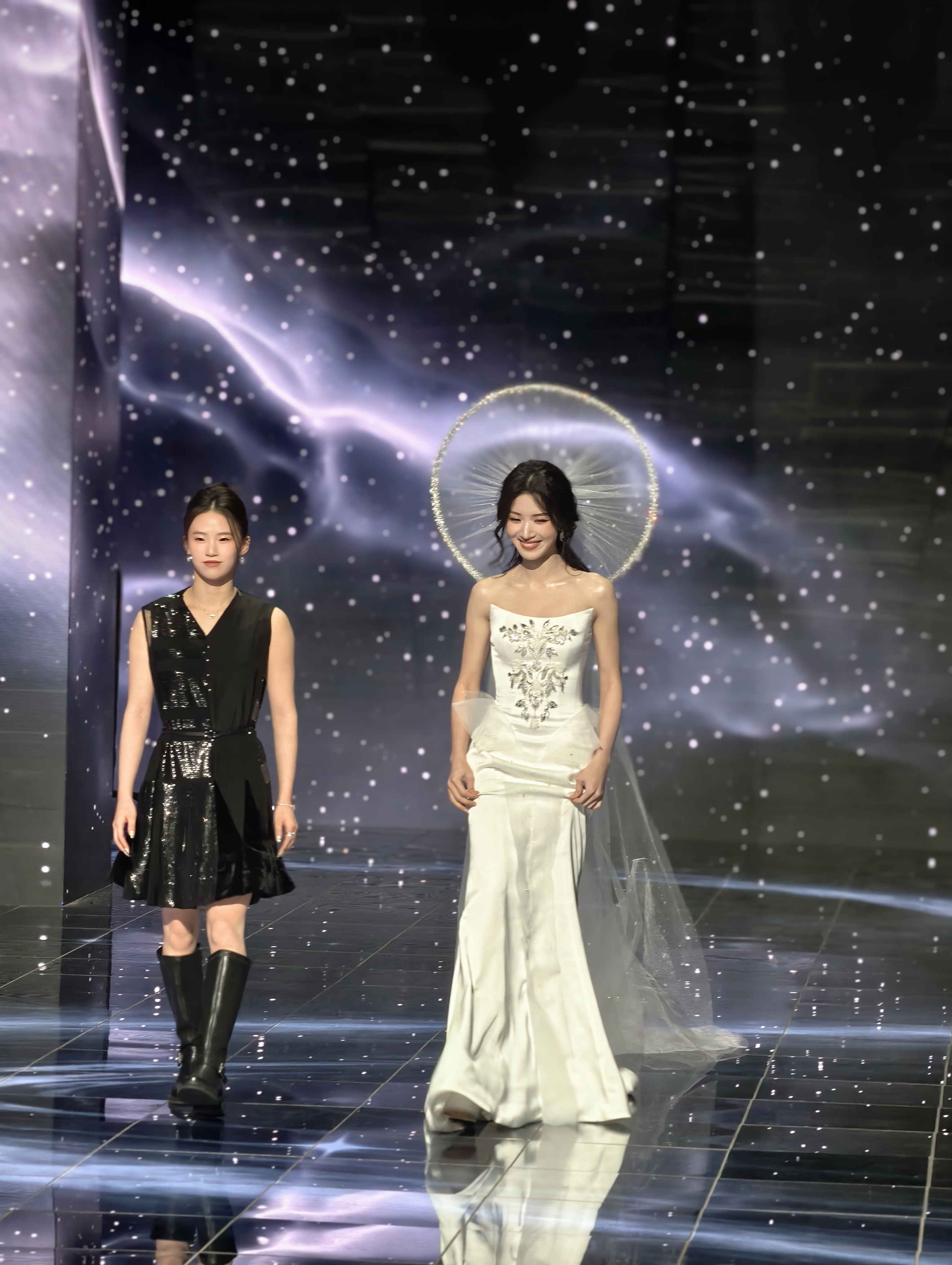 杨紫今晚参加微博之夜内场的造型,身穿TonyWard2025秋冬定制系