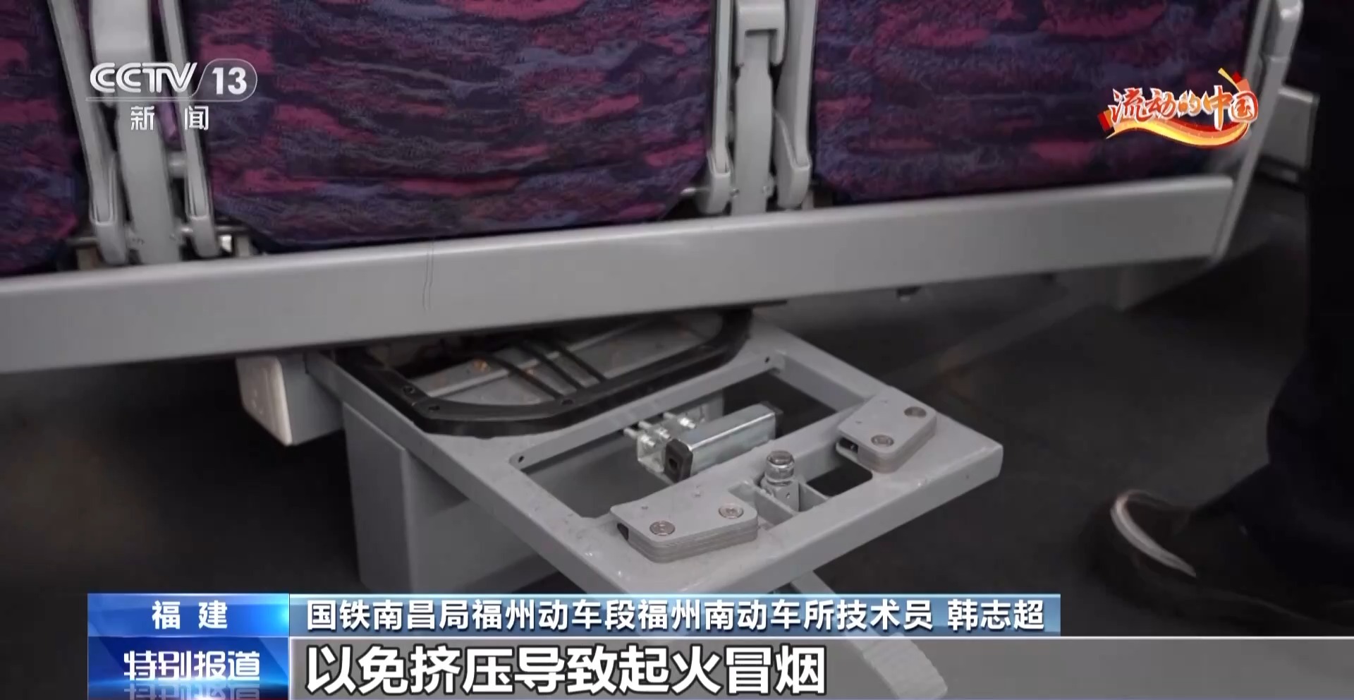 国铁南昌局福州动车段福州南动车所技术员韩志超:建议用原装充电器与充电线给电子产品充电,避免因充电设备不匹配导致起火。如果手机滑入座椅缝隙无法取出,也不要擅自调整座椅,以免挤压导致起火冒烟。