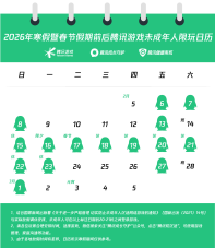 上证报中国证券网讯(记者罗茂林)2月5日,腾讯游戏发布2026年寒假暨春节假期前后未成年人游戏限玩通知,根据相关规定,寒假29天内,未成年人可玩游戏时间共计15小时。同时,针对寒假期间未成年人用网时长增加、家庭共号场景高发等潜在问题,腾讯游戏宣布正式启动“2026年寒假未成年人保护专项行动”。