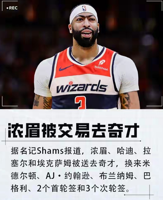 2026年2月5日,NBA交易市场炸锅了!据ESPN名记报道,独行侠把浓眉交易到了奇才。这可是浓眉连续第二年被交易,去年他刚从湖人去了独行侠。 独行侠这波操作把杰登·哈迪、德安吉洛·拉塞尔等球员送去奇才,换来了克里斯·米德尔顿等球员和5个选秀权,其中2个首轮比去年交易东契奇时还多一个。 奇才成了最大赢家,之前得到特雷·杨,现在又有浓眉,直接组起三巨头。32岁的浓眉本赛季虽有伤,场均还能拿20.4分11.1篮板2.8助攻,防守也是顶级。以奇才这配置,下赛季冲击东部前四甚至争冠都不是没可能,要是乐透抽到状元签,那就更无敌了。