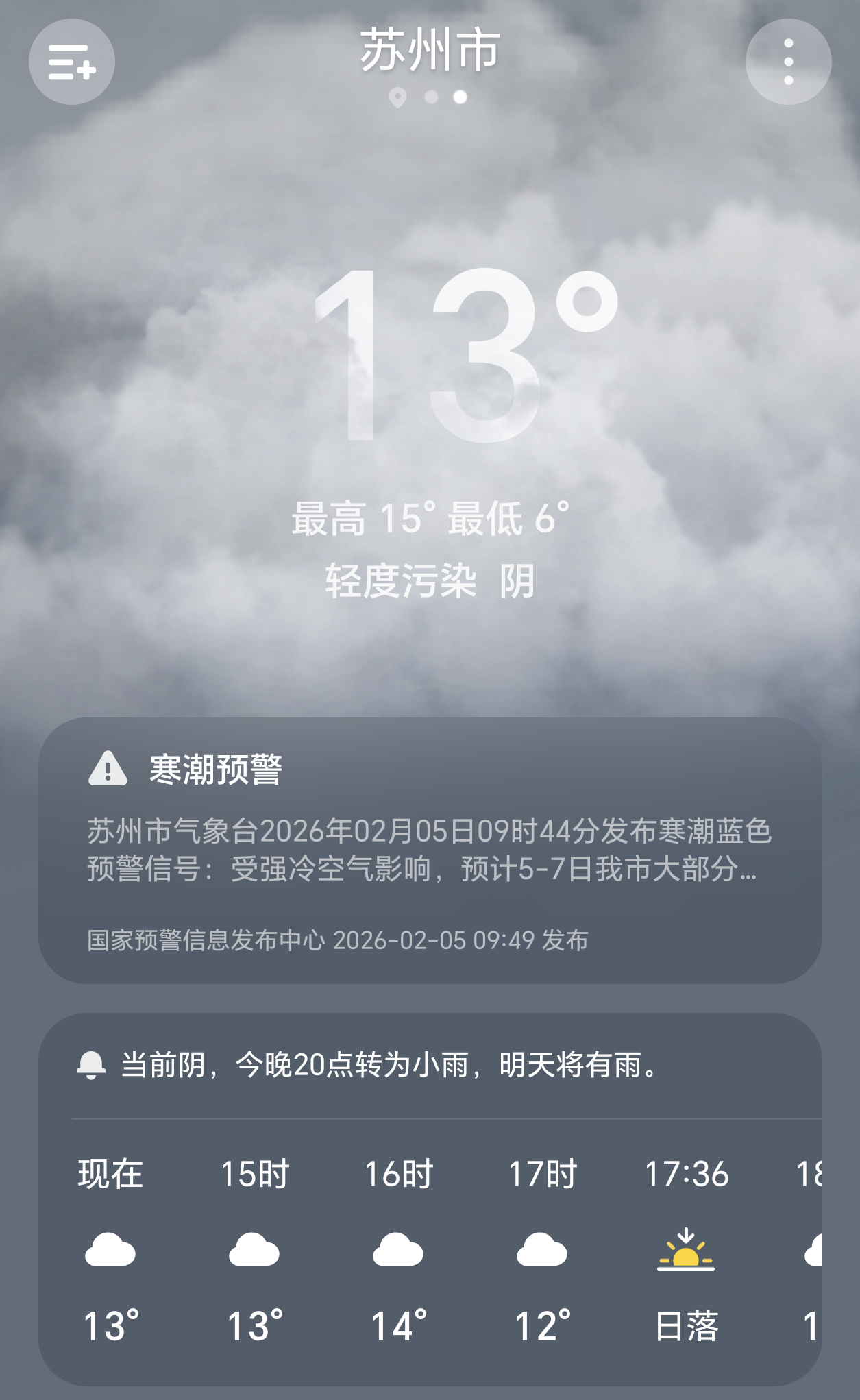 江浙沪皖将迎今年最大雨雪已从苏州“逃离”了,看了下天气预报,幸好追觅之夜是在昨天
